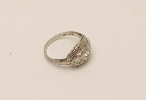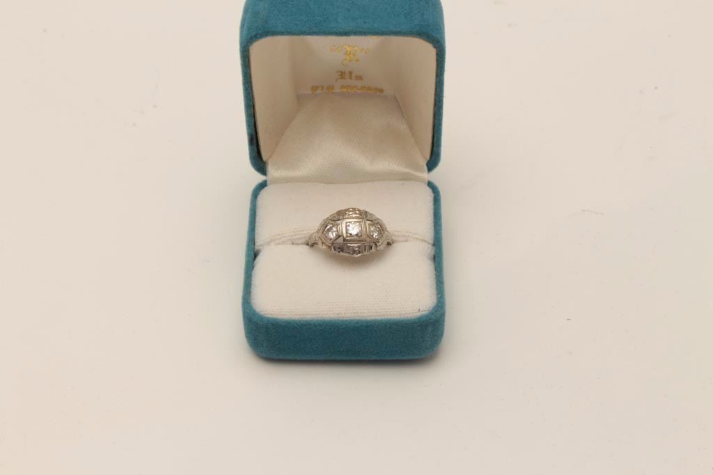 Lot 404 One antique ring in 14k white gold set with 3 diamonds weighing approx. 0.45 cts. EST.$650-750