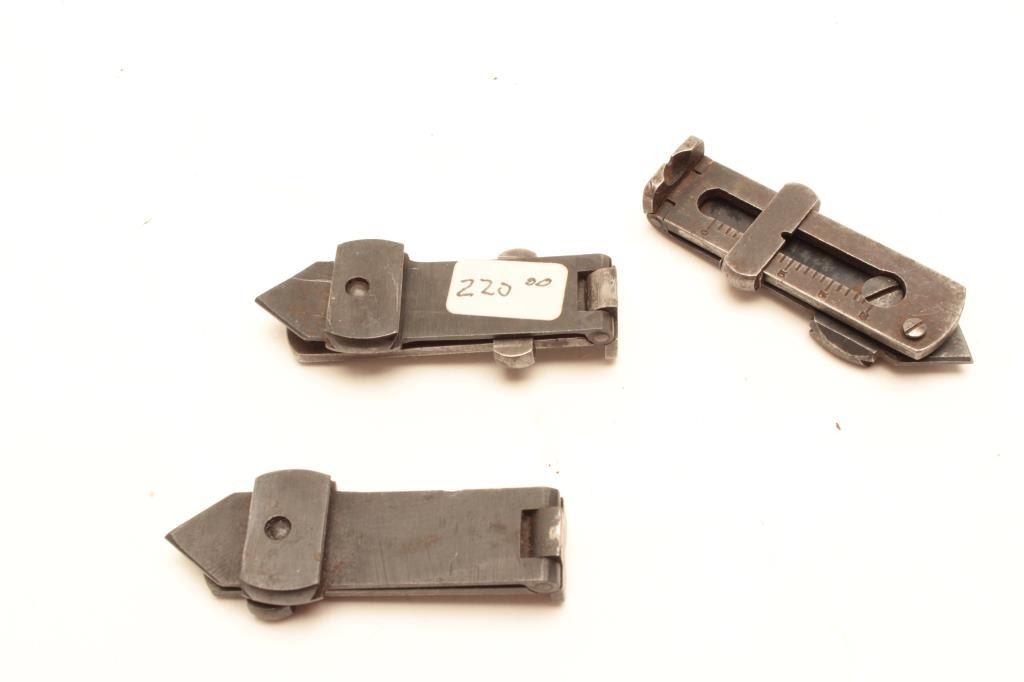 Lot 419 Lot of 3 1873 Model Winchester carbine folding rear sights; 2 are good, 1 is very good +. Est.