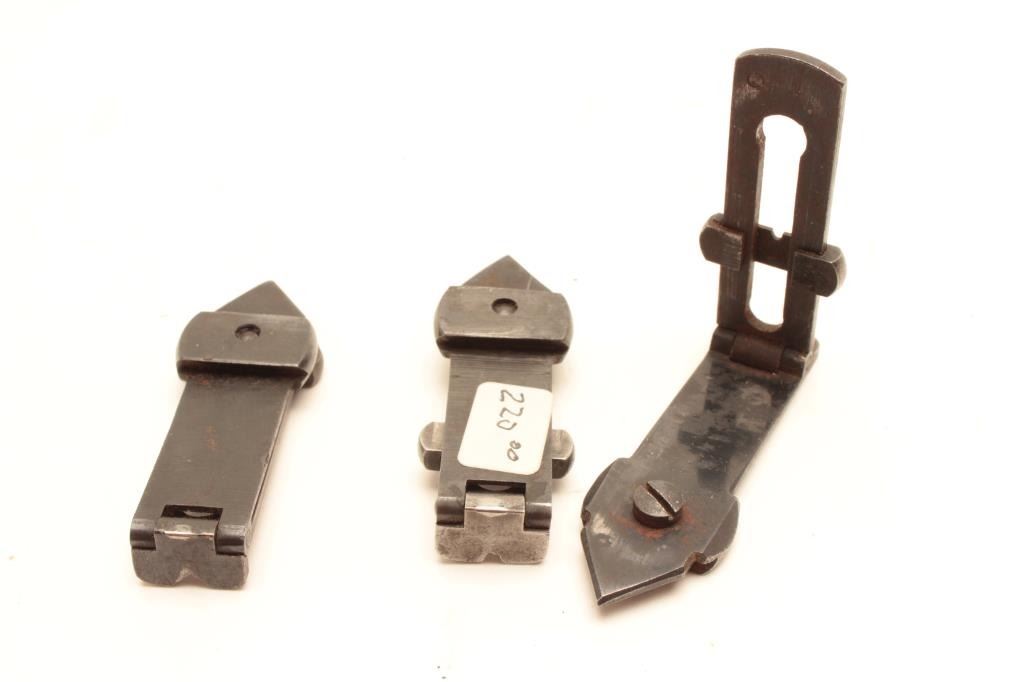 Lot of 3 1873 Model Winchester carbine folding rear sights; 2 are good, 1 is very good +. Est.: $300-$600.