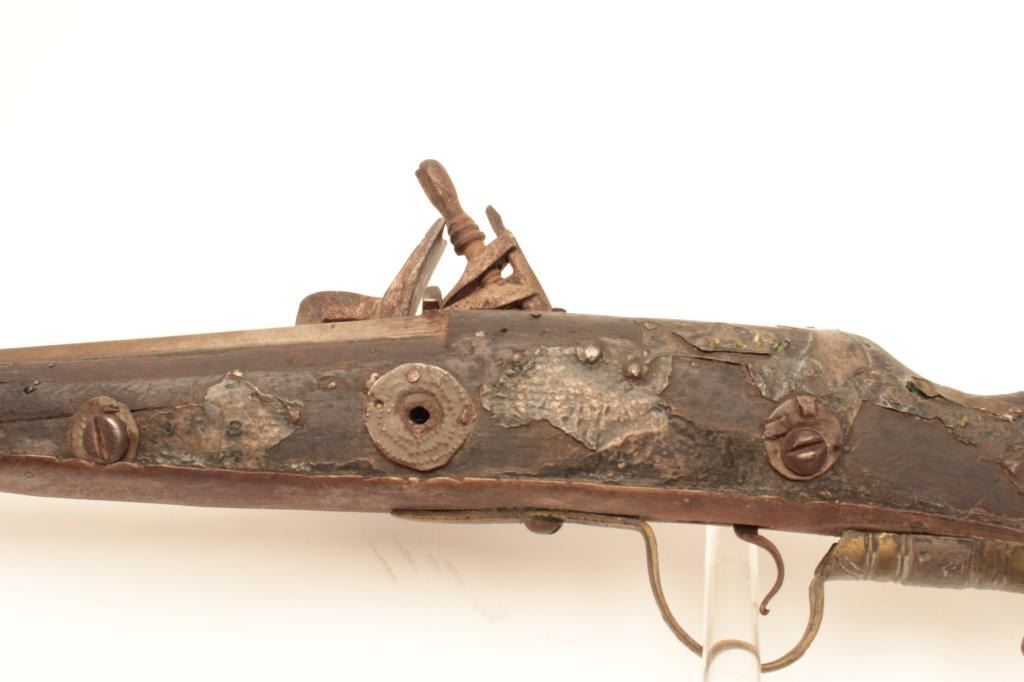 Lot of two nineteenth century Arabic camel guns; one shows niello silver; other shows bone inlay; fair to poor overall conditions; may clean; absolutely genuine to the 19th century. (Antique). Est.:$300-$600.