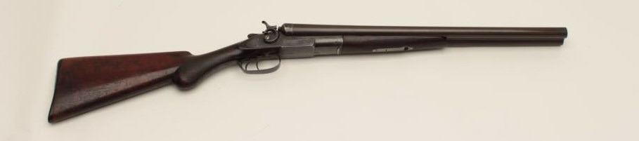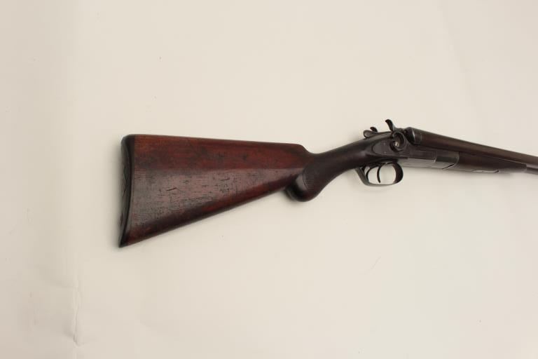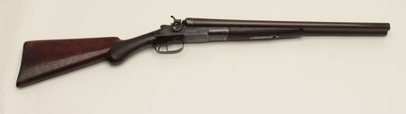 Remington Arms Co. SxS exposed hammers shotgun, 12 gauge, barrels cut to 20” (coach gun style), brown finish, checkered wood stocks, S/N 205077, in overall good condition as modified; good actions, dark bores, goodmarkings and fair to good wood showing wear and scattered old mars and scratches from carry and storage. (C&R). Est.: $300-$600.