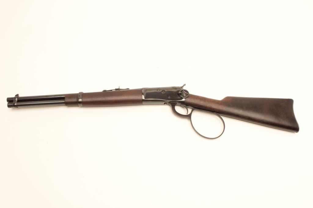Rossi lever action copy of a Model 92 SRC, .45 Colt caliber, blued finish, exaggerated lever size, wood stocks, S/N AM030216, in overall fine condition with the majority of its original finish, fine bore, action,markings and wood. (Modern). Est.: $300-$600.