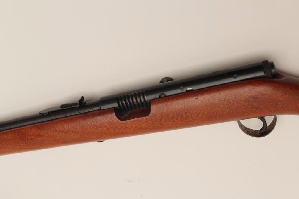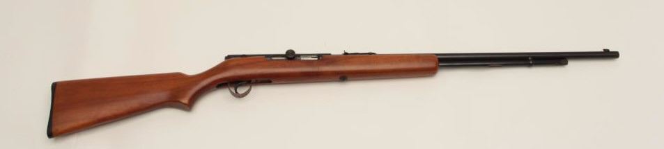 Lot 436 Springfield Model 87A semi-automatic rifle, .22LR caliber, 24” round barrel, blued finish, wood st