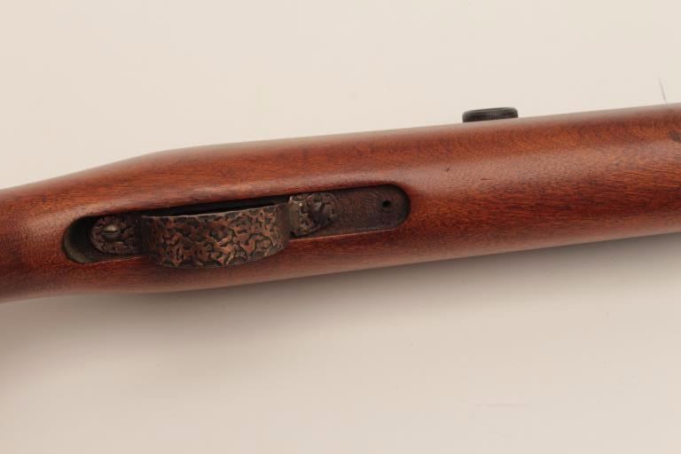 Springfield Model 87A semi-automatic rifle, .22LR caliber, 24” round barrel, blued finish, wood stock, no visible S/N, in overall very good to near fine condition displaying the majority of its originalfinish, crisp action and markings, very good bore, near fine stock. (Modern). Est.: $100-$200.