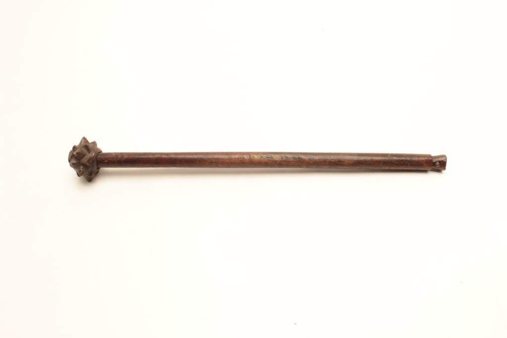 17th century ottoman cast bronze mace head on replaced shaft of later era. Measures 21 ½” overall. The condition is good. Est.: $300-$600