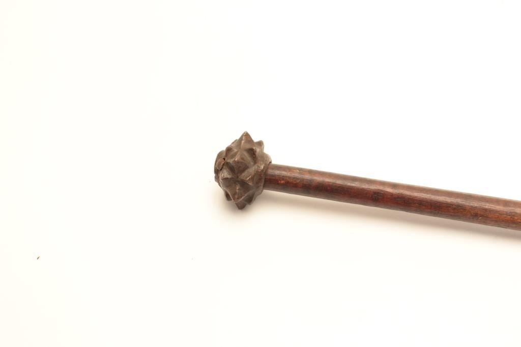 Lot 447 17th century ottoman cast bronze mace head on replaced shaft of later era. Measures 21 ½” overall.