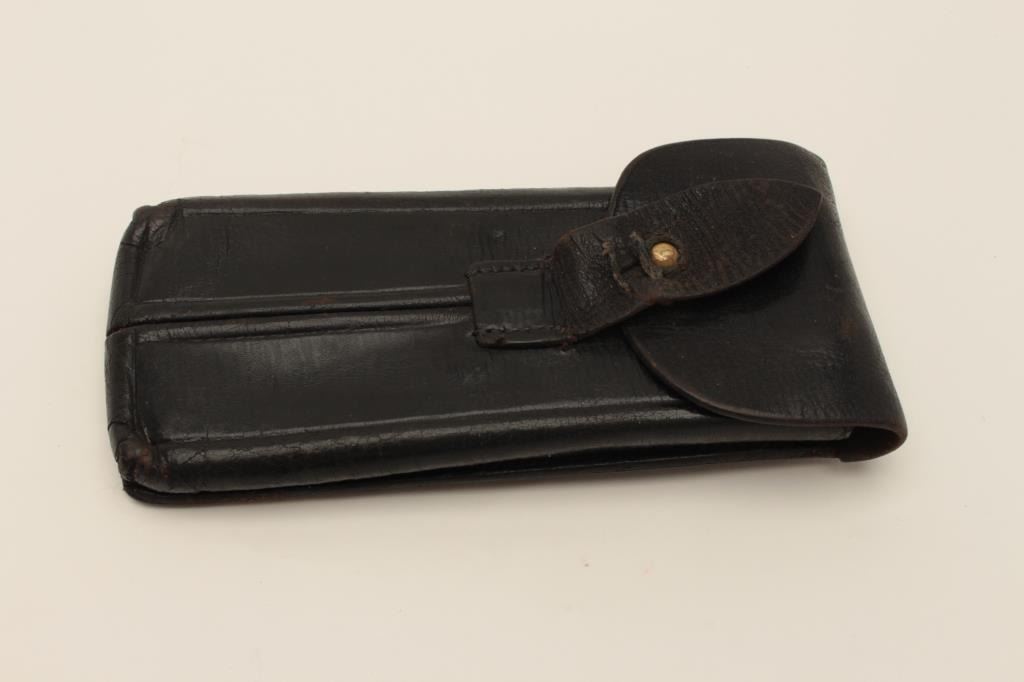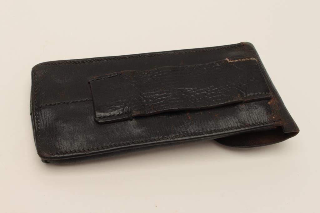 Artillery Luger pouch for 2 clips in good condition with repair to tab. Est.: $200-$400