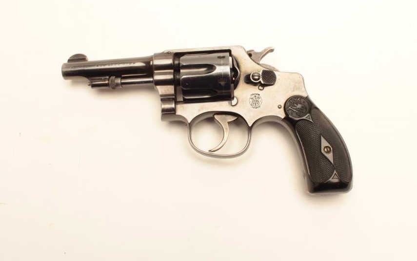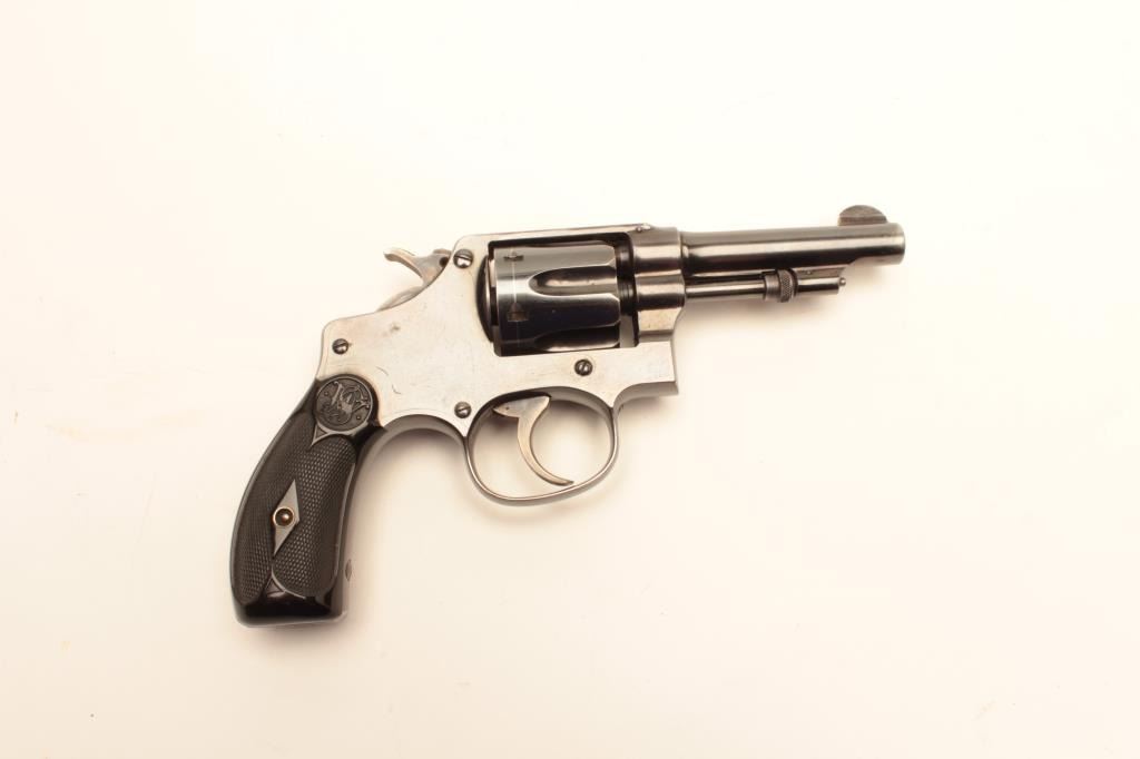 Lot 456 Smith & Wesson DA hand ejector revolver, .32 Long caliber, 3.25” barrel, blued finish, checkered h
