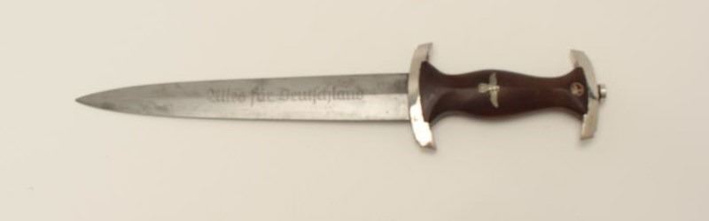 German SA dagger and sheath, blade marked “RZ/M” and “M7/2” in overall very good + condition; hanger attached to sheath ring. Est.: $250-$500.