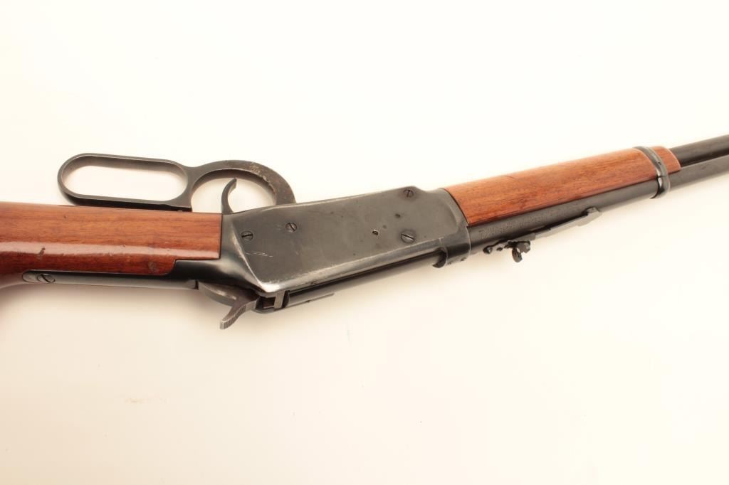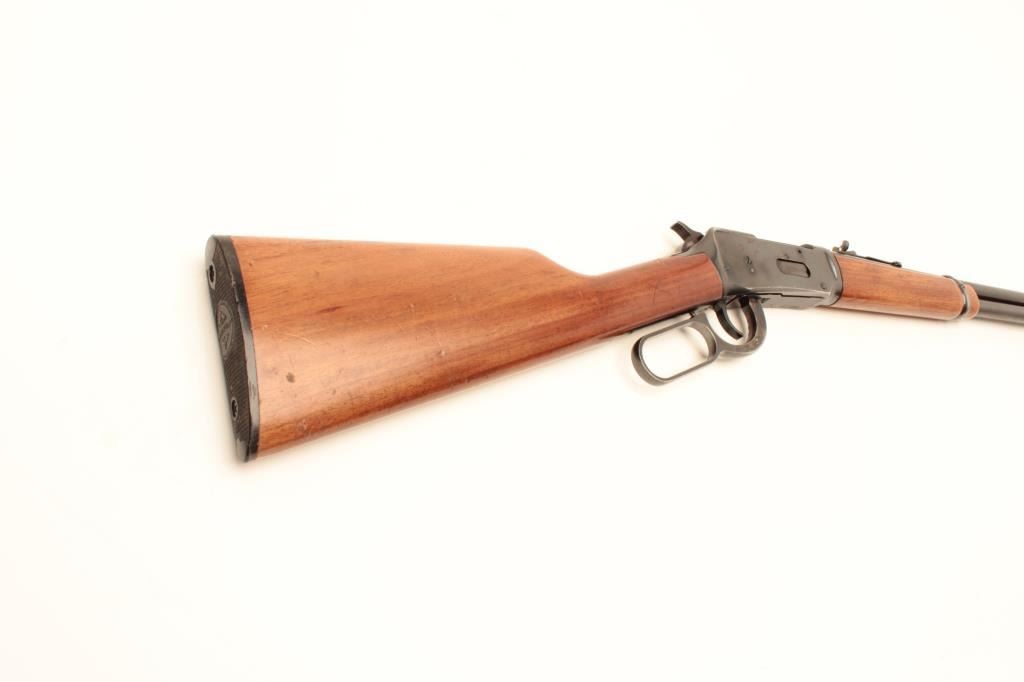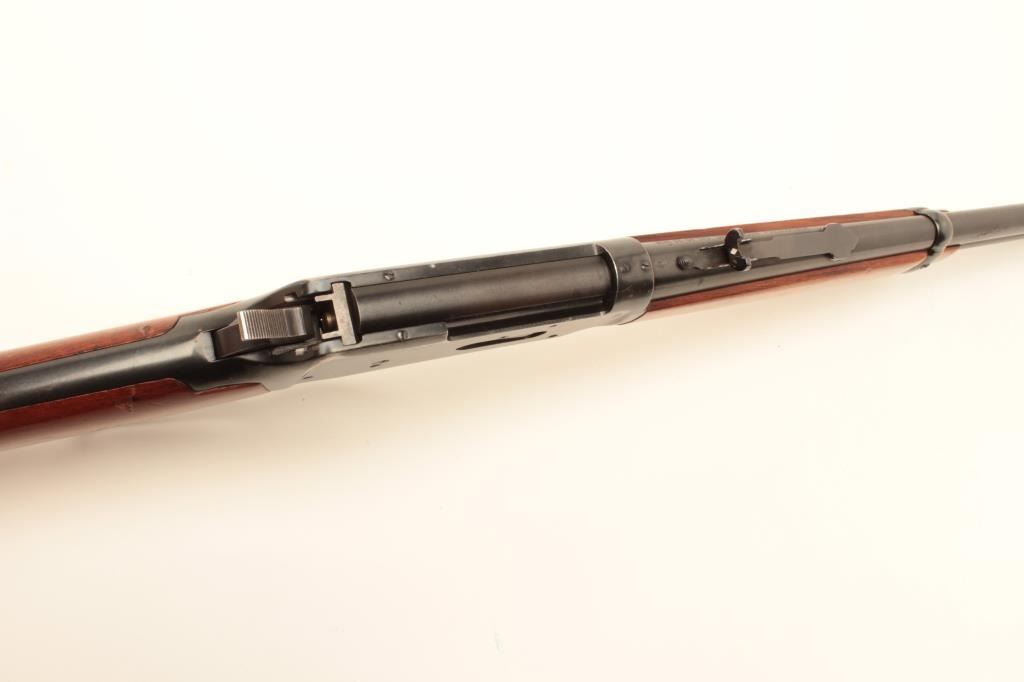Winchester Model 94AE lever action carbine, .30-30 Win. caliber, 20” barrel, blued finish, wood stocks, S/N 5281395, in overall very good + condition showing the majority of its original finish, some scattered spotsof erosion, knackering to the front area of the lever, very good to near fine bore, crisp action and markings, very good wood. (Modern/No PPT). Est.: $200-$400.