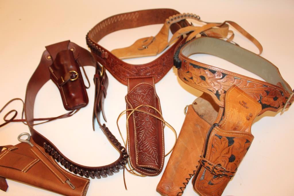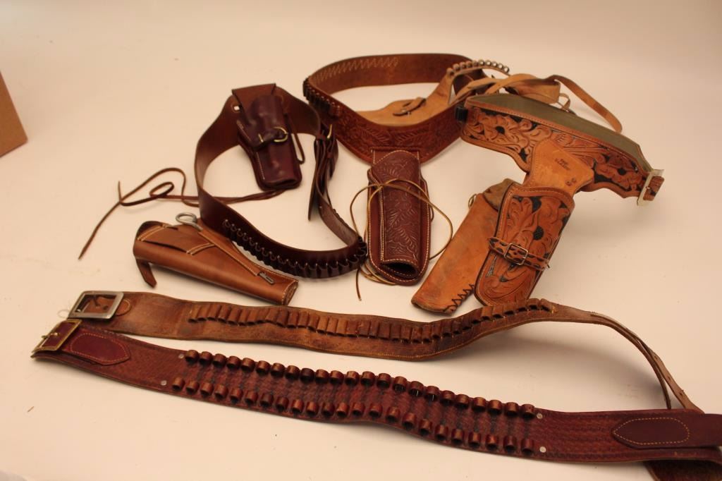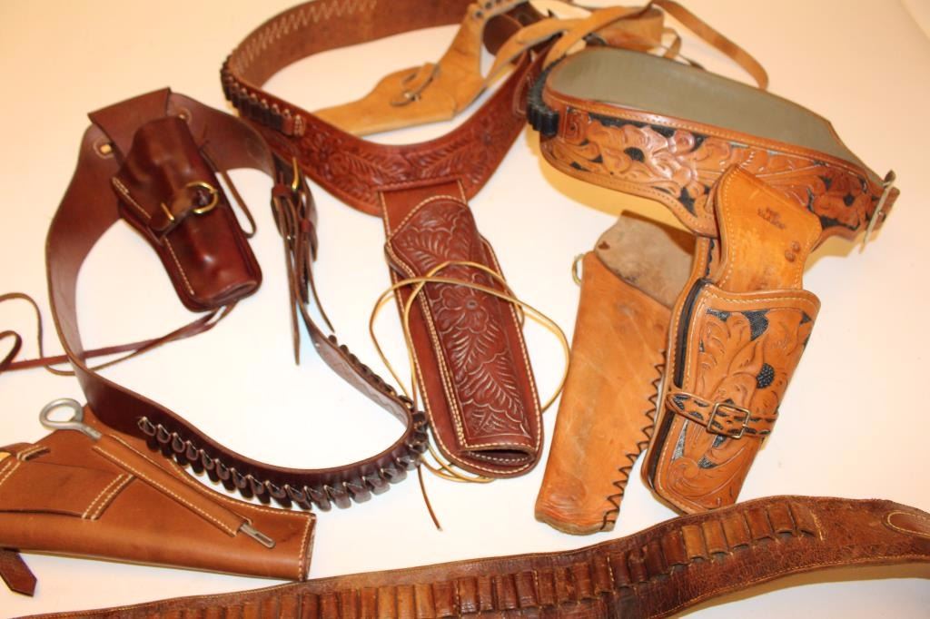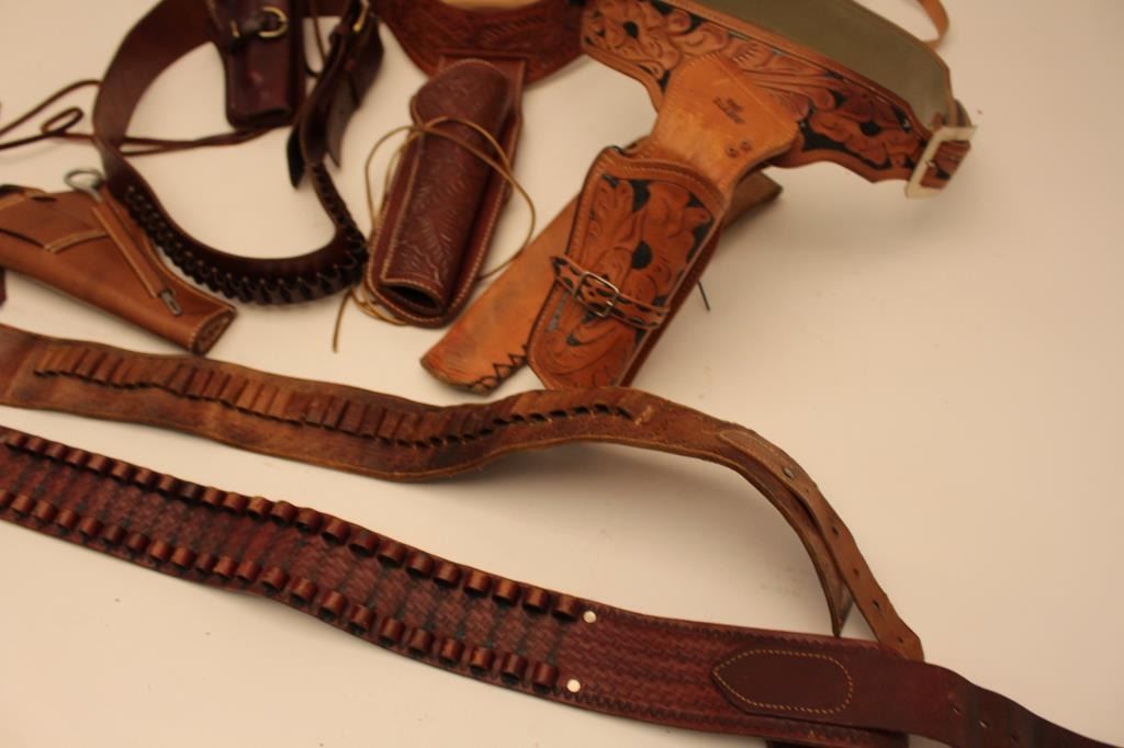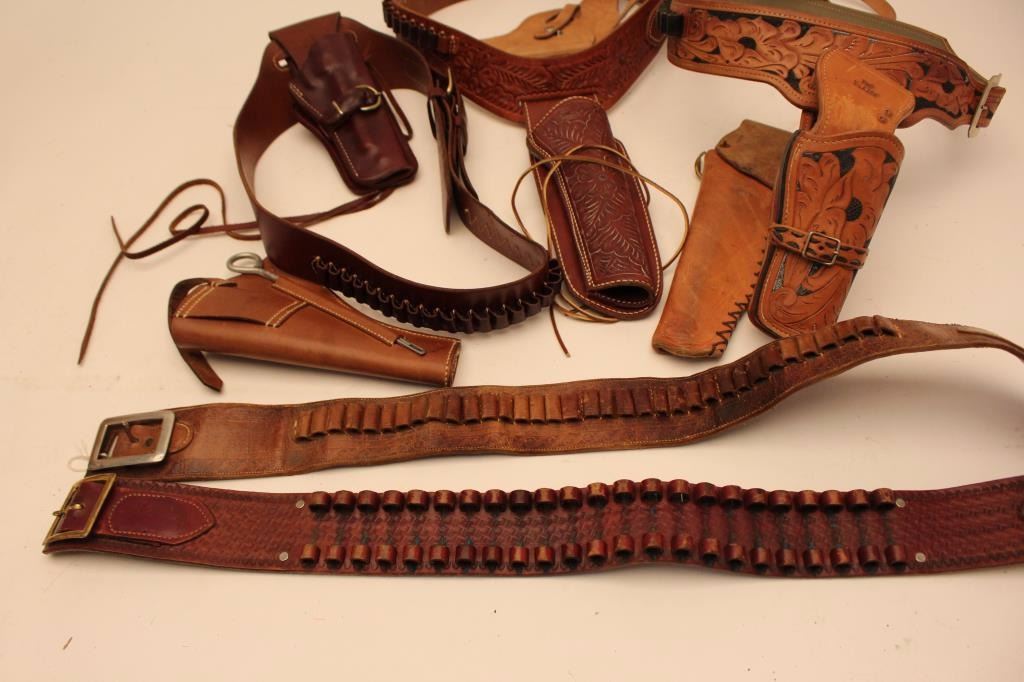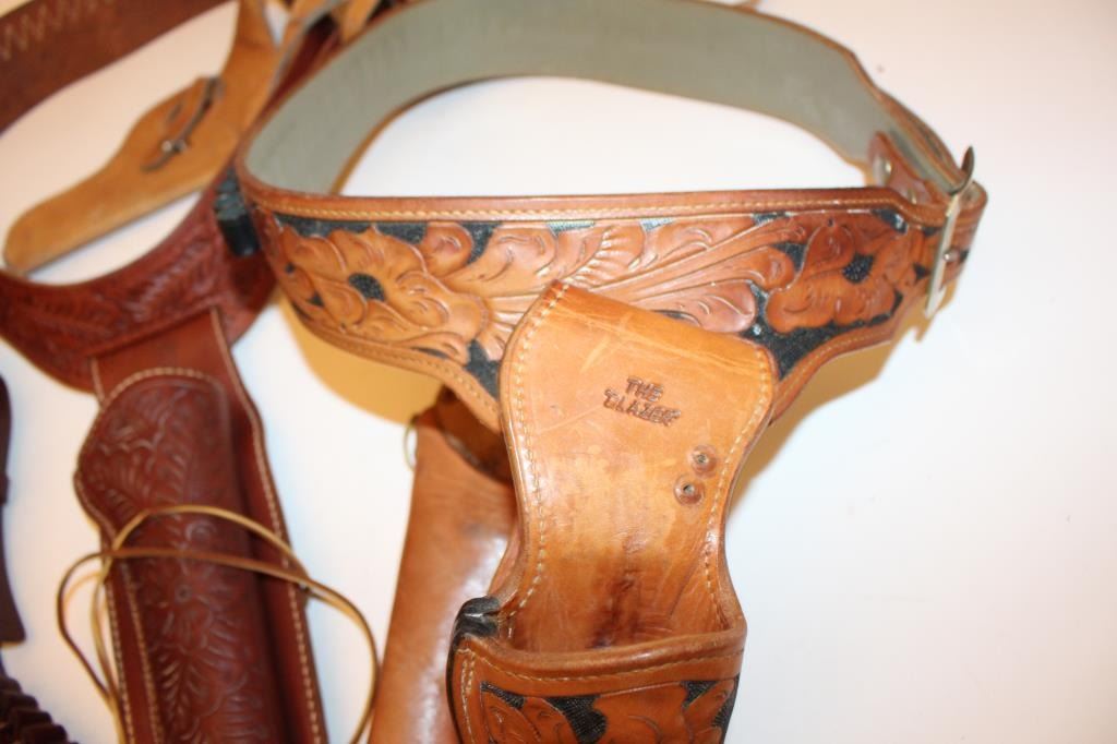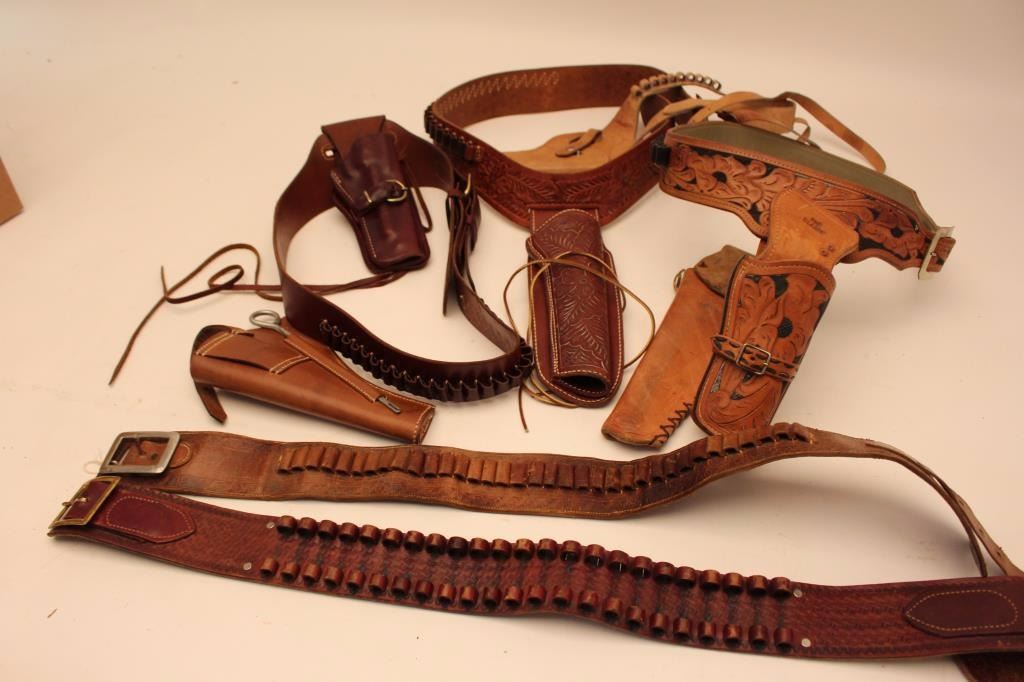 Two leather flap holsters for Luger semi-automatic pistols, one black, one brown. Est.: $200-$400.
