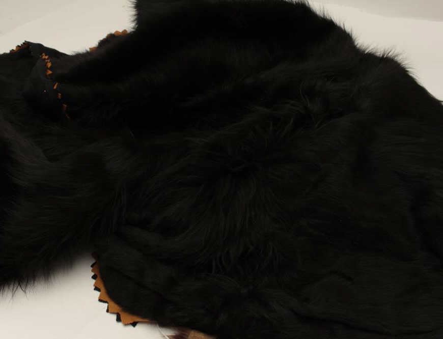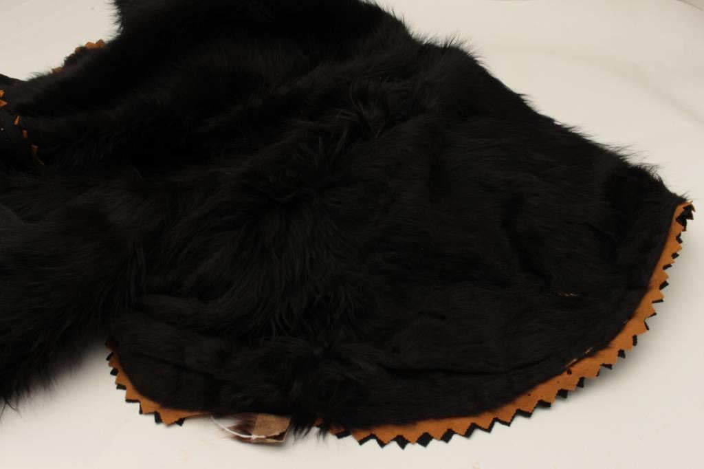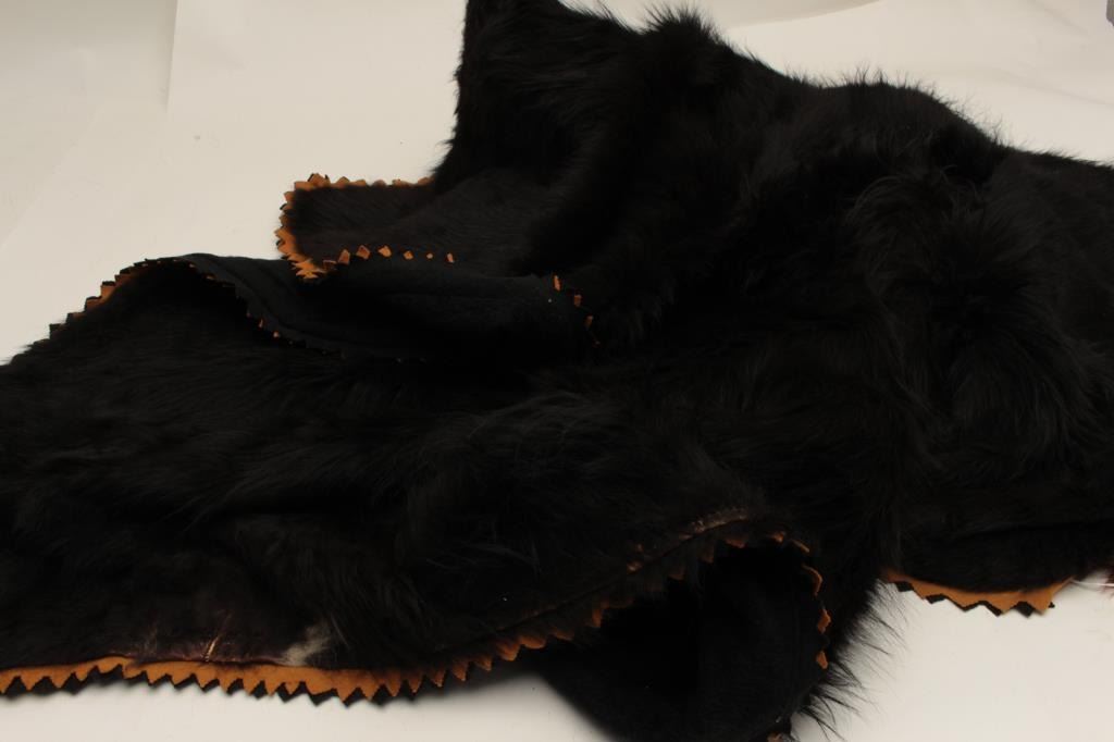 Cowhide buggy blanket or wrap, approximately 6 feet x 5.5 feet in overall good condition with tanner’s tag from the area of Scout’s Rest; a very nice old Western piece! Est.: $300-$600.