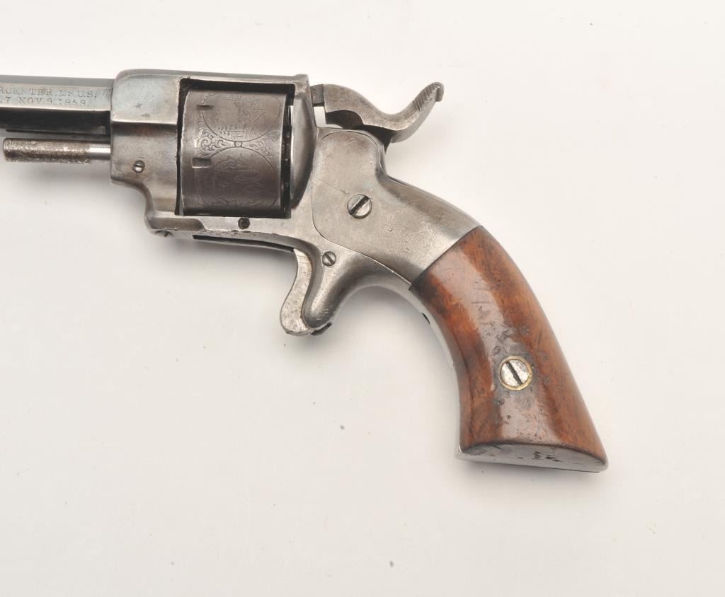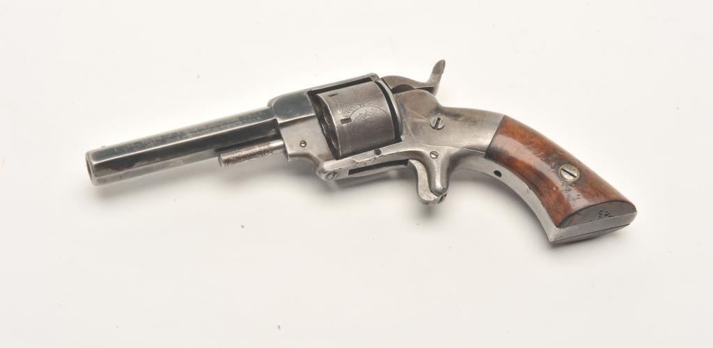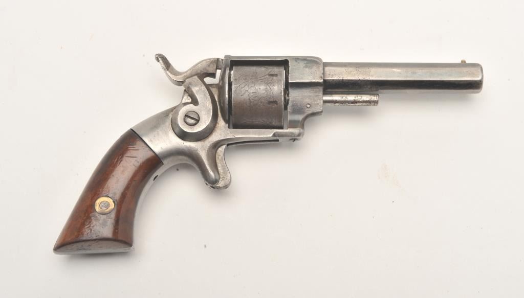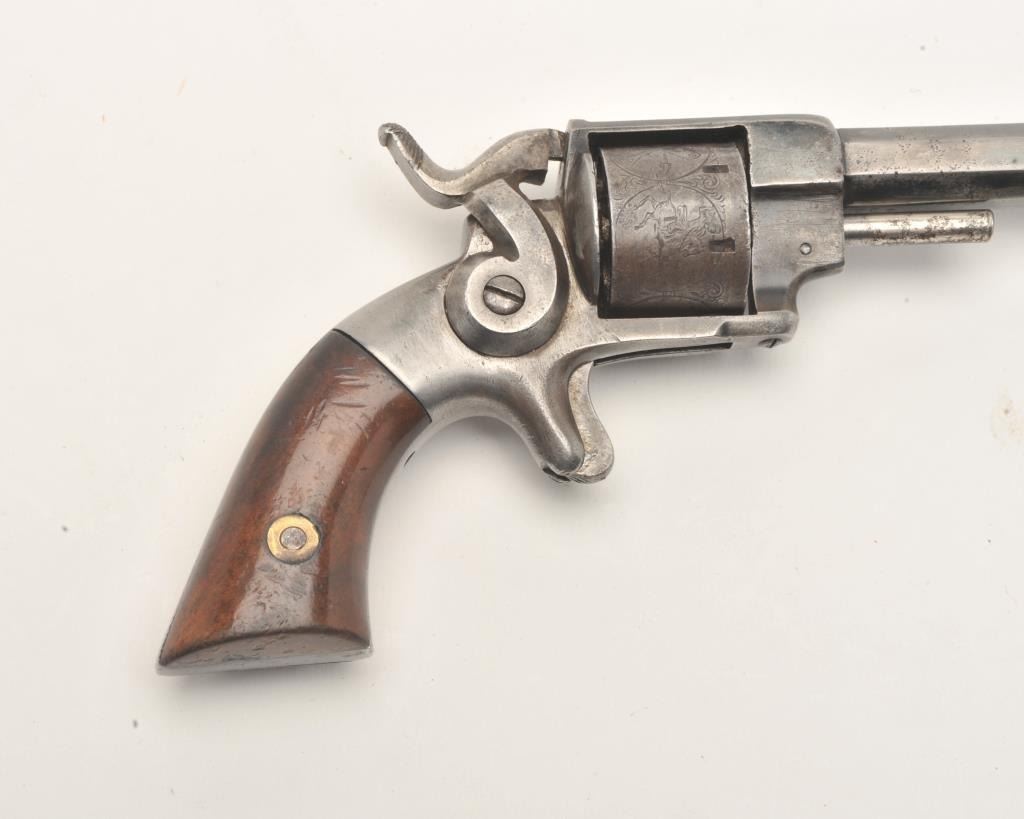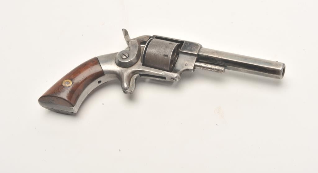 Lot 494 Allen & Wheelock spur trigger revolver, .22 caliber, 3” octagon barrel, blued finish, wood grips,