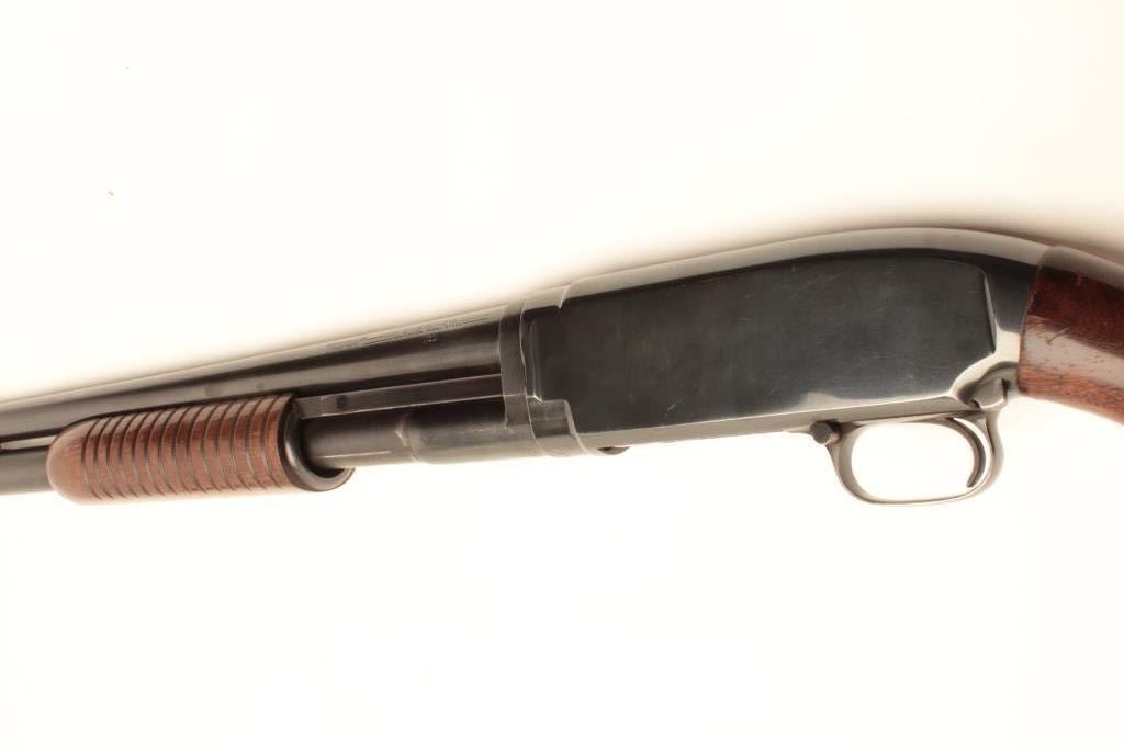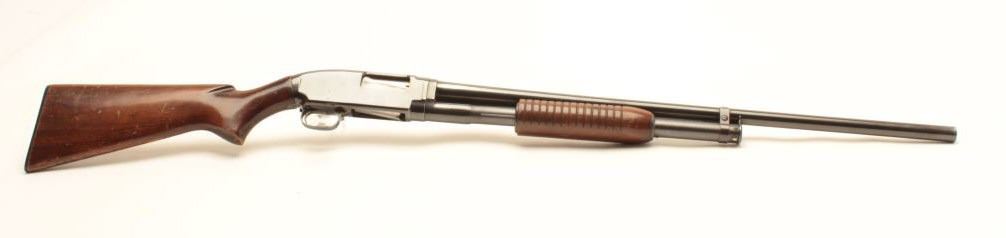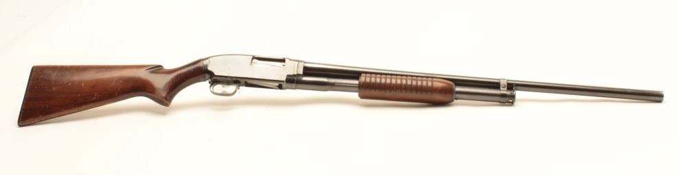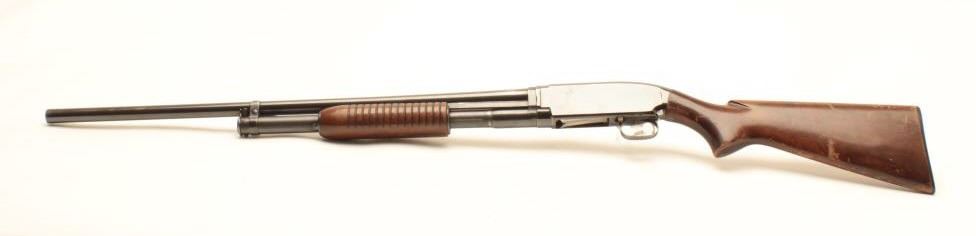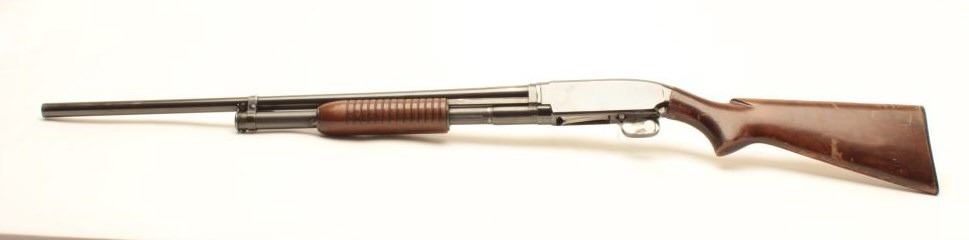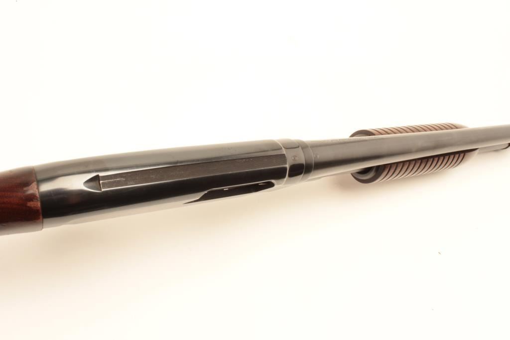 Lot 497 Winchester Model 12 pump action takedown shotgun, 12 gauge, 28” barrel, blued finish, wood stocks,
