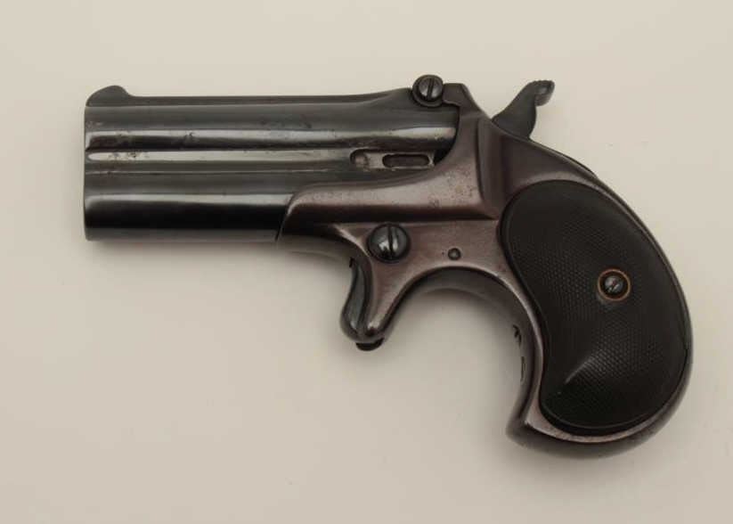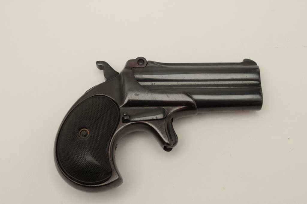 Lot 502 Antique Remington over under .41 caliber derringer with one line address. Re-blued and left hinge