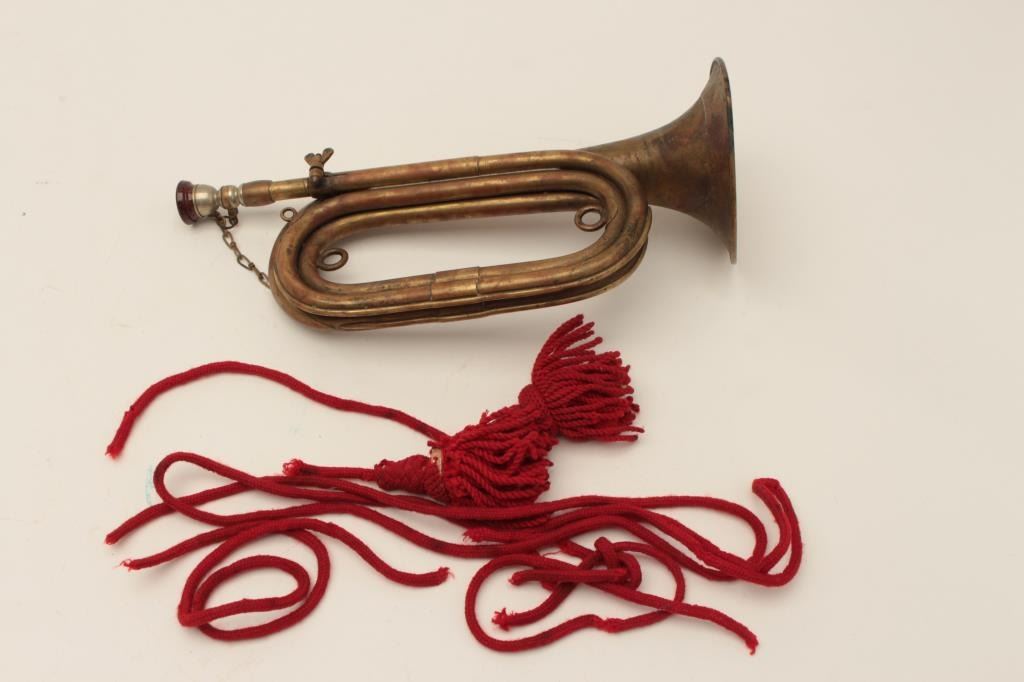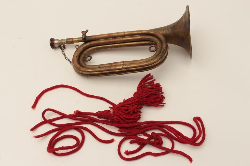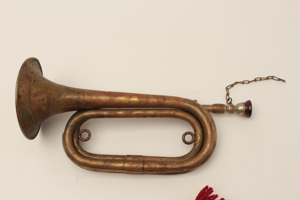 Lot 517a WW II era Japanese military bugle with partial cord and mouthpiece in very good condition along wi
