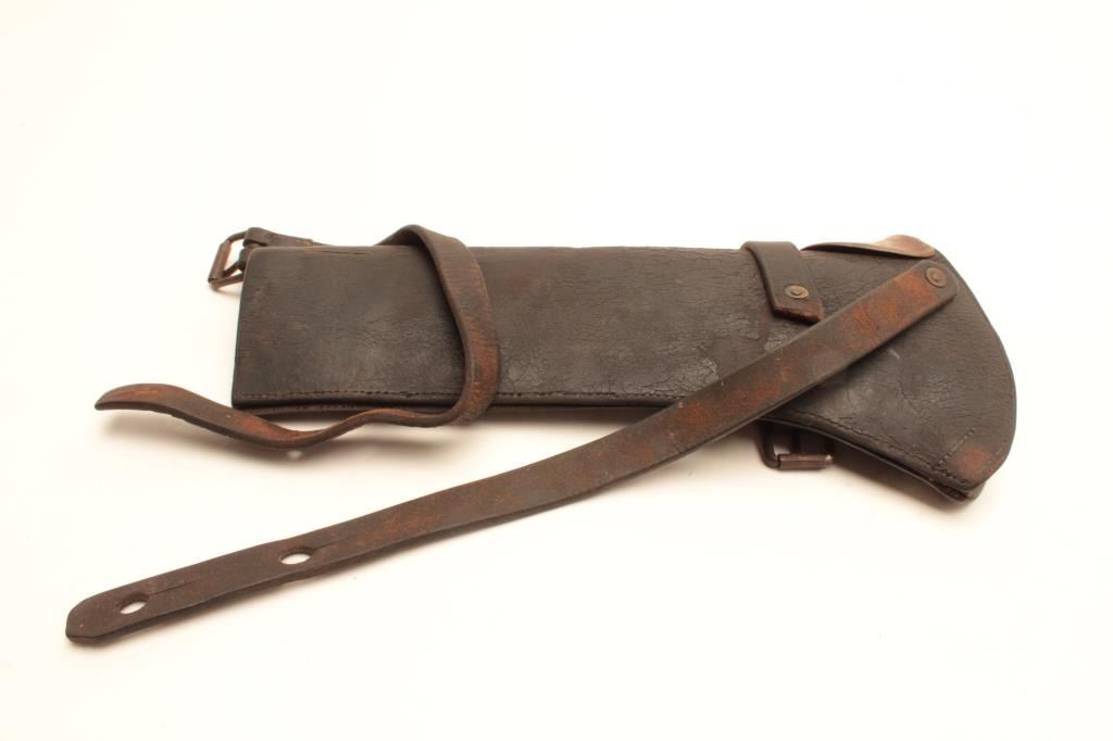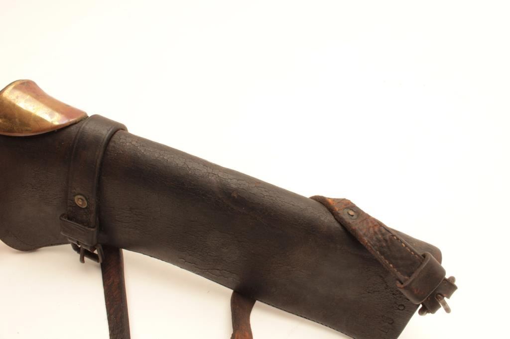 Lot 520 Early Civil or Indian Wars leather carbine scabbard with brass throat; overall good condition.