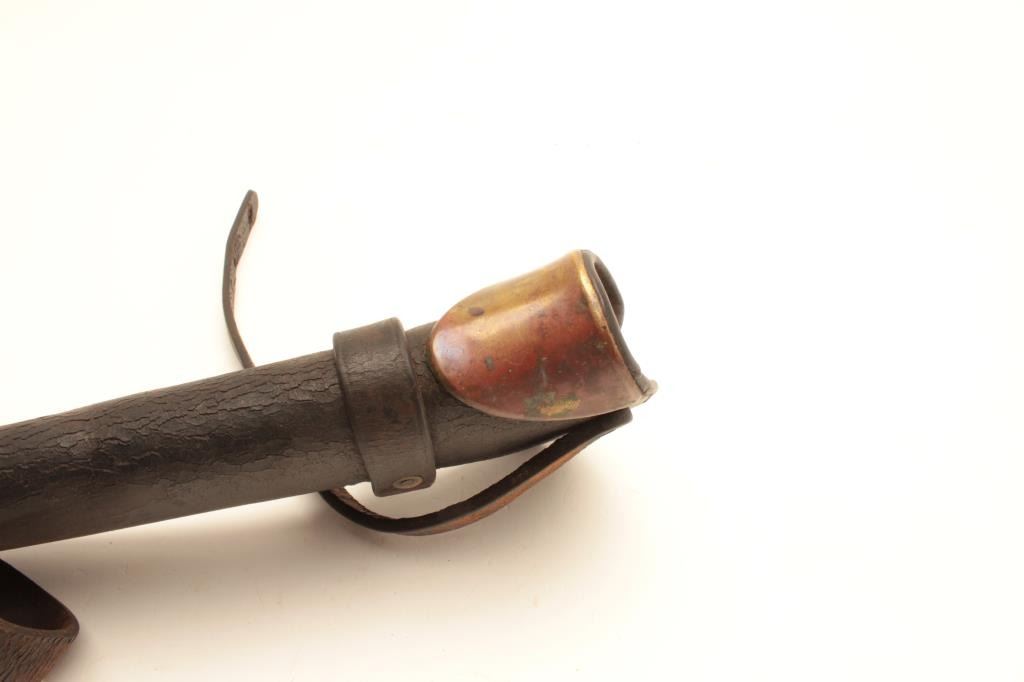 Early Civil or Indian Wars leather carbine scabbard with brass throat; overall good condition. Est.: $250-$500.