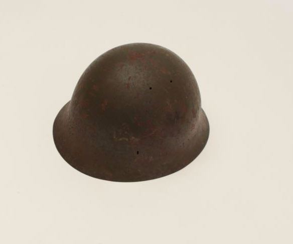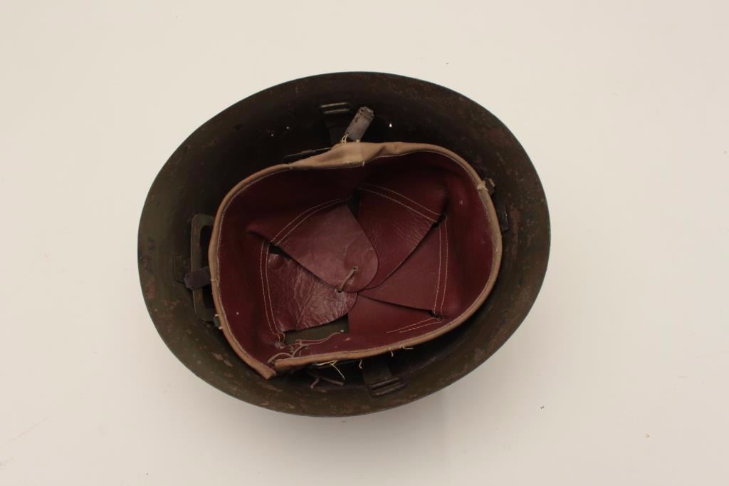 Lot 537 Japanese helmet, WW II era; good metal, no insignia; brackets and liner good. Est.: $150-$