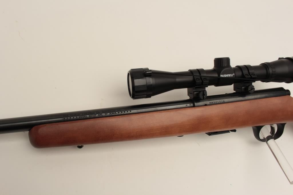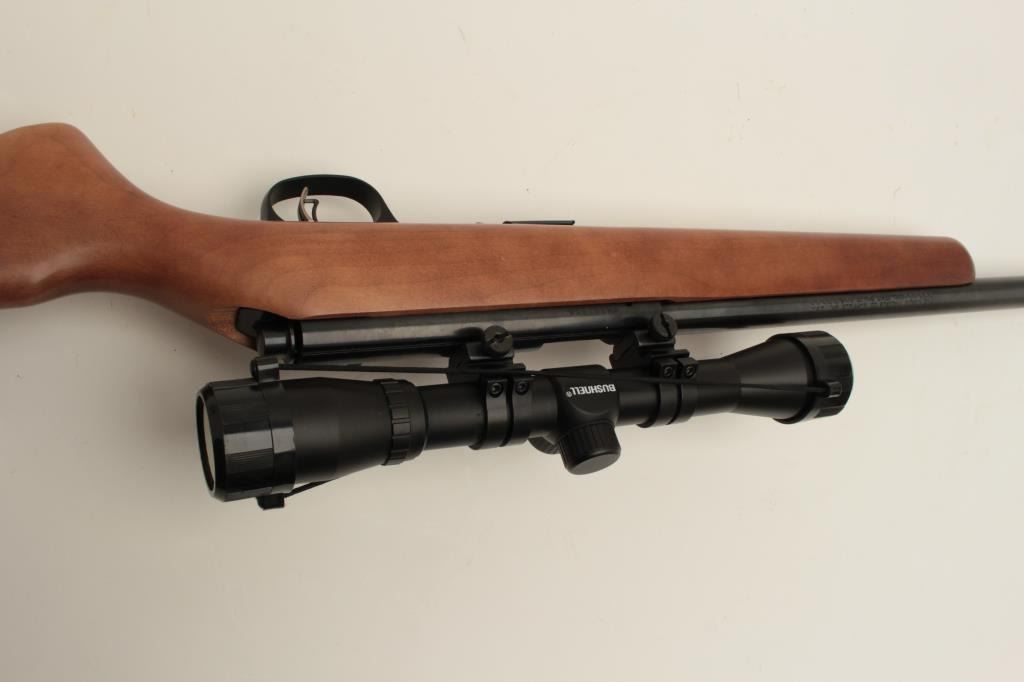 Marlin Model XT-17 bolt action rifle, .17 HMR caliber, 22” round barrel, black finish, wood stock, with one extra magazine, S/N MM30151A, mounted with a Bushnell scope displaying crisp optics, in overall finecondition with fine bore, action, markings and stock. (Modern/No PPT). Est.: $150-$300.