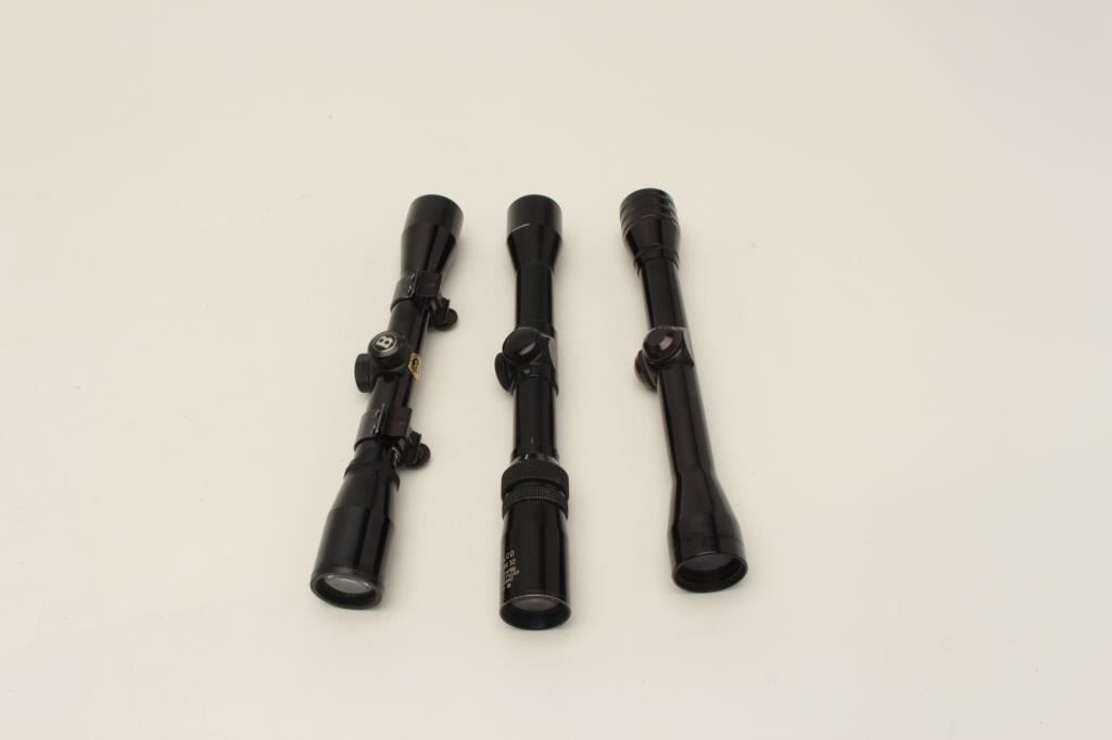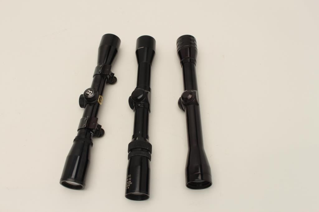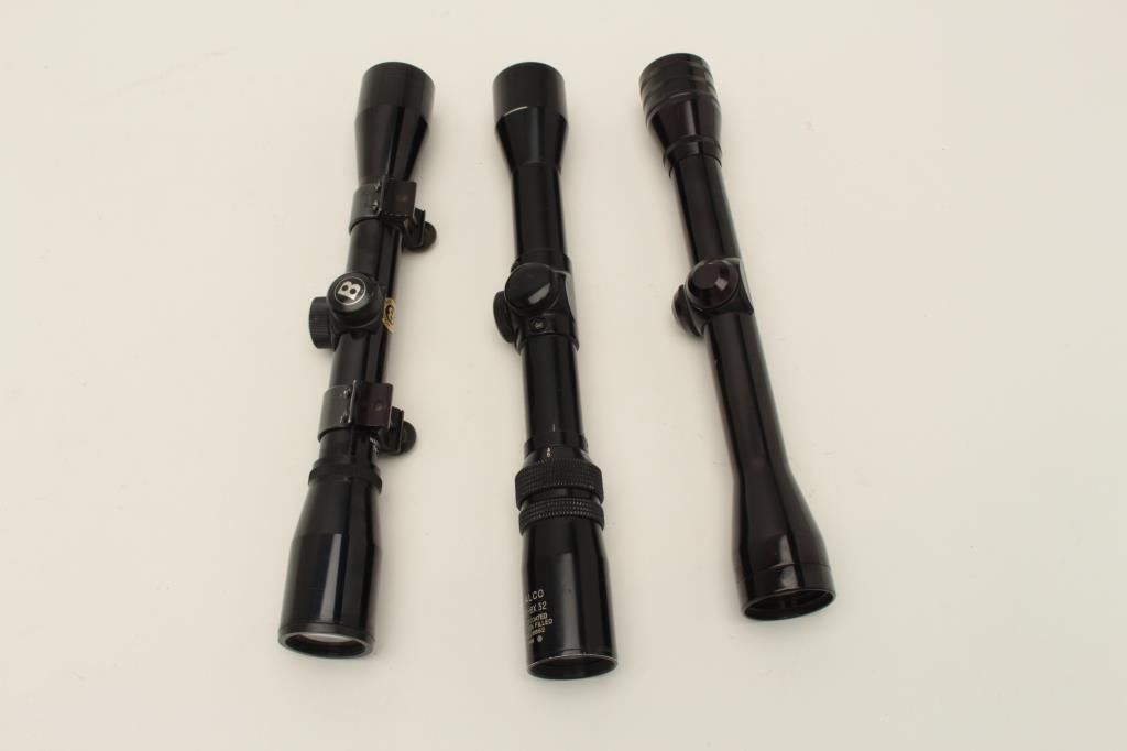 Lot 570 Lot of 3 scopes including a Bushnell Sportview, a Halco 2.5X-8X 32 scope and a Redfield 4X scope;