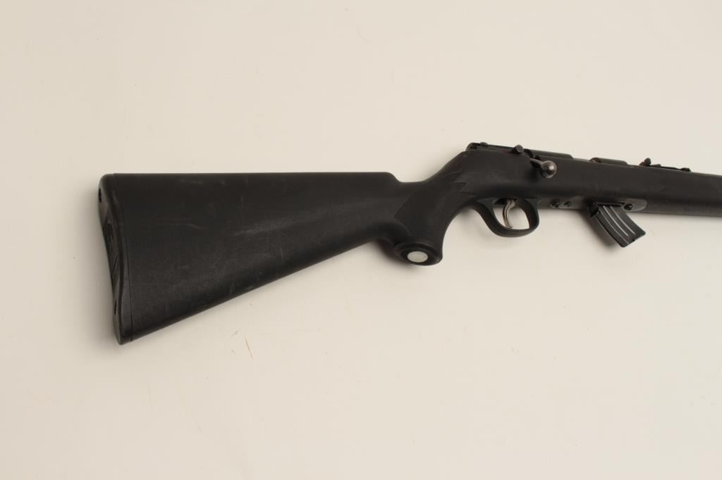 Lot 575 Savage MK II bolt action rifle, .22LR caliber, 21” barrel, black finish, synthetic stock, S/N 0343