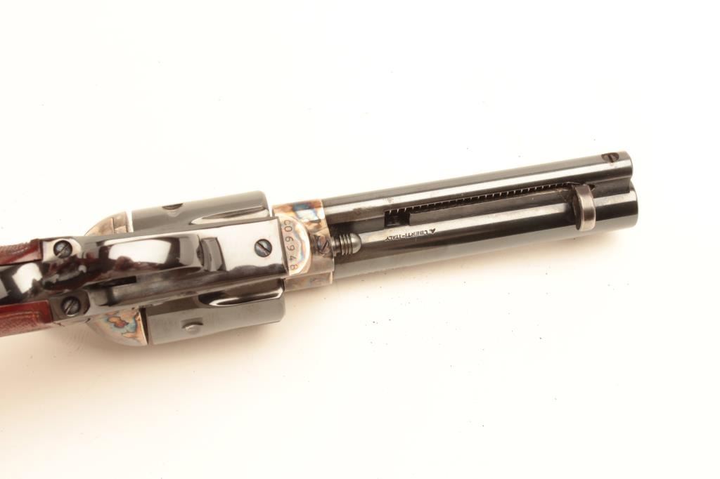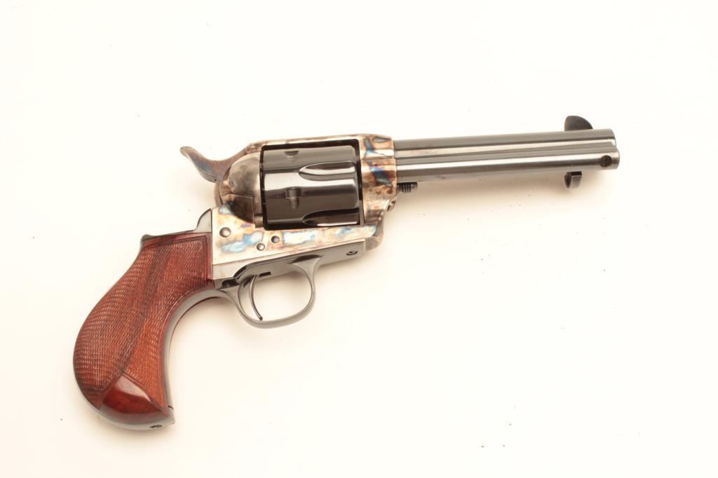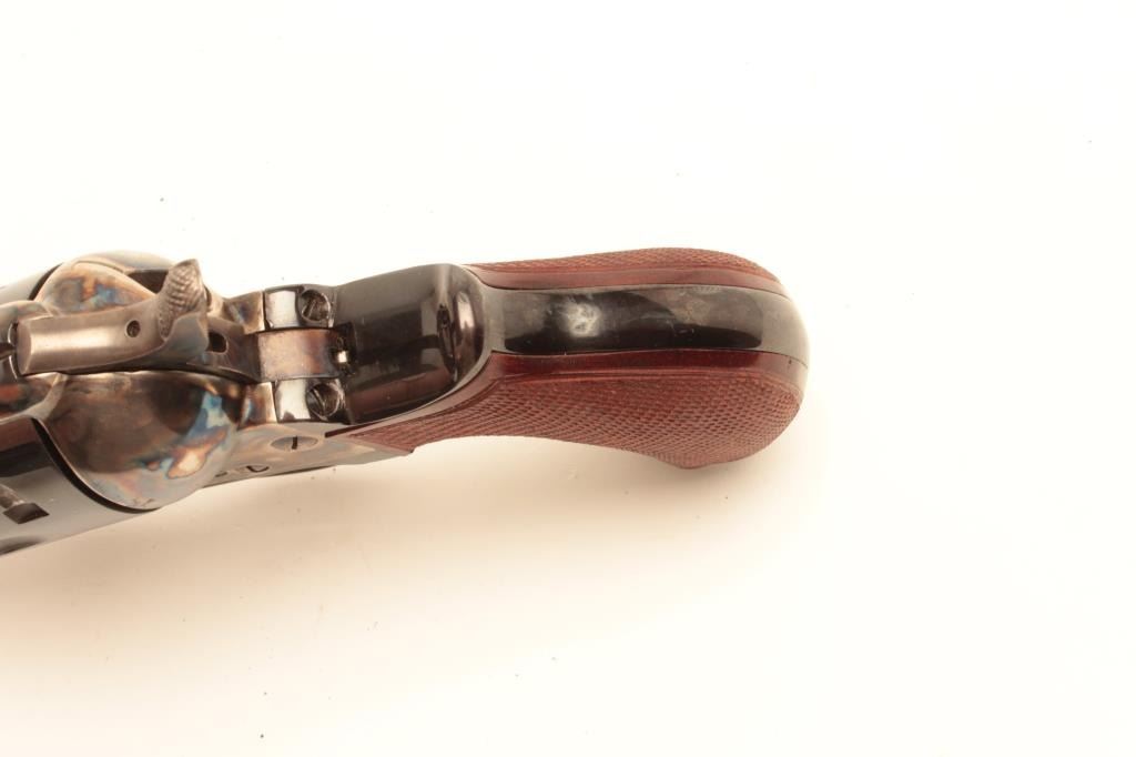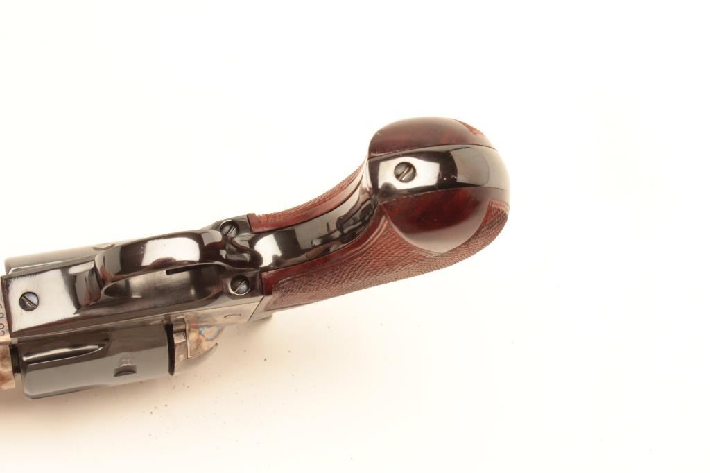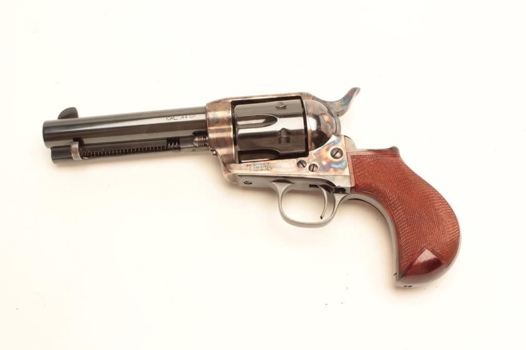 Uberti copy of a Colt SAA revolver for Cimarron Mfg. Co., .44 Special caliber, 4.75” barrel, blued and case hardened finish, birds head grip with checkered wood grips, S/N C06948, in overall like new condition. (Modern). Est.: $250-$500.