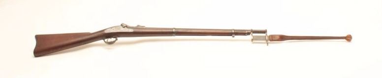 Springfield fencing musket from trapdoor Springfield rifle; dated 1914 on scabbard of training bayonet; very good overall. (Antique). Est.: $250-$500.