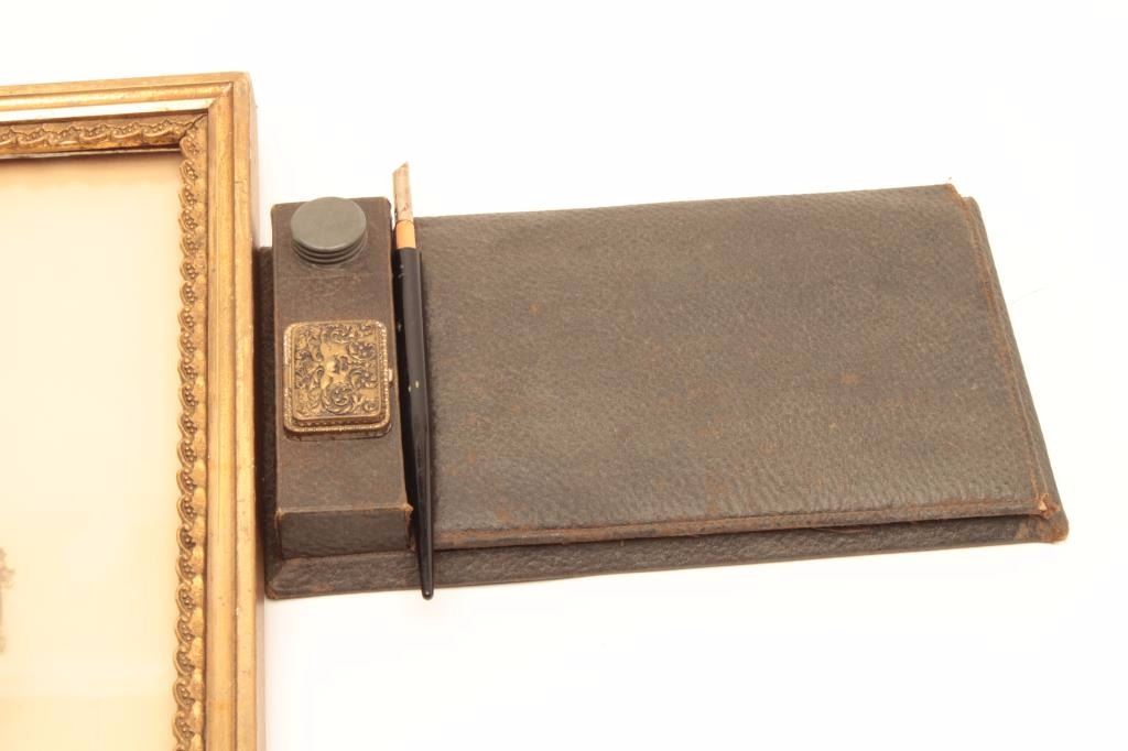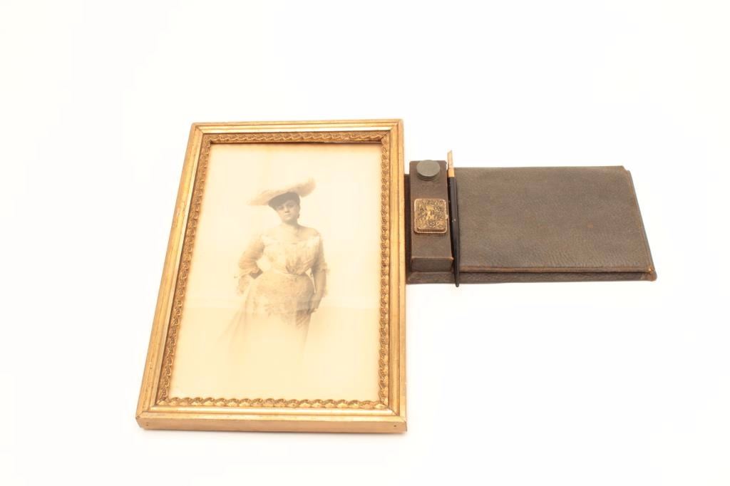 Lot of two antique smalls including a framed photo of a Victorian woman, approximately 15” x 10” embossed “Matzene Studio/Chicago” and a hotel registry booklet. Est.: $50-$100.