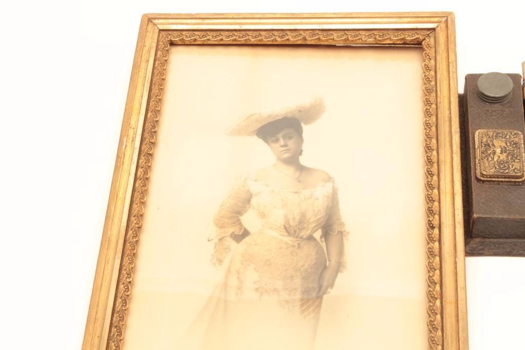 Lot 604 Lot of two antique smalls including a framed photo of a Victorian woman, approximately 15” x 10” e