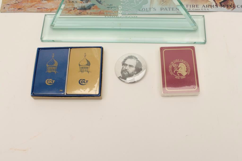 Lot of Colt memorabilia items including playing cards, etc. Est.: $50-$100.