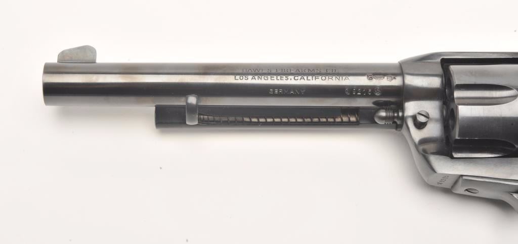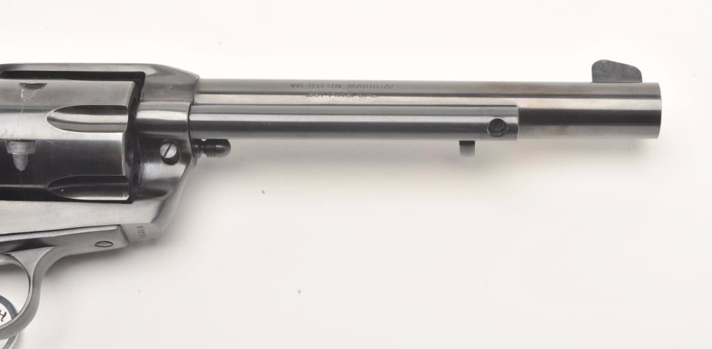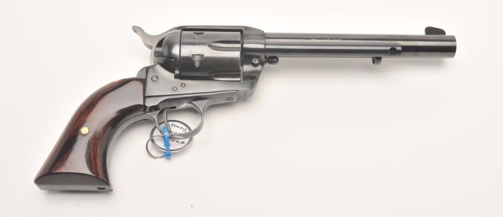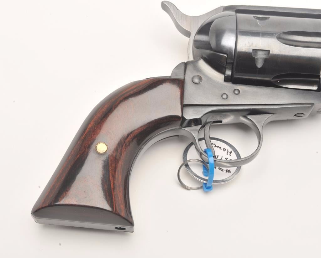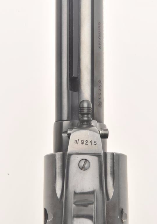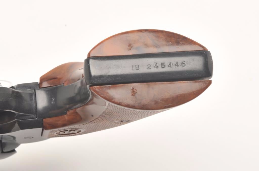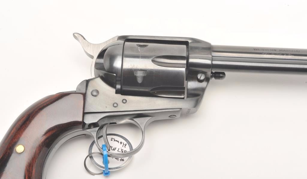 Hawes Firearms Co., Western Marshal single action revolver, .357 Magnum caliber, Serial #9215. The pistol is in very good to nearly fine overall condition with a 6 ½” barrel. The pistol retains nearly all of its bluefinish with muzzle wear and a drag line on the cylinder. The smooth wood grips are in very good condition showing only handling marks. The bore is very good, the action crisp and markings are sharp. Est.:$150-$300. (Modern)