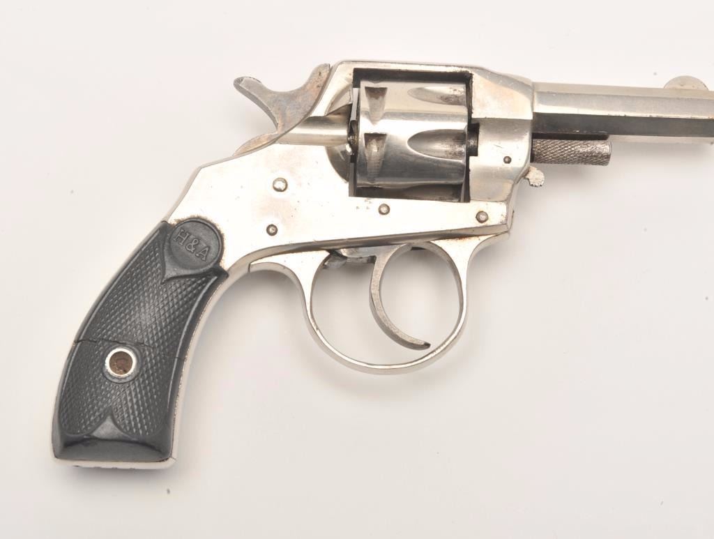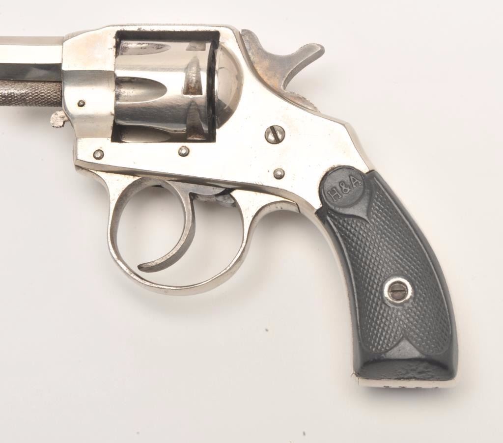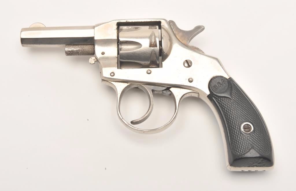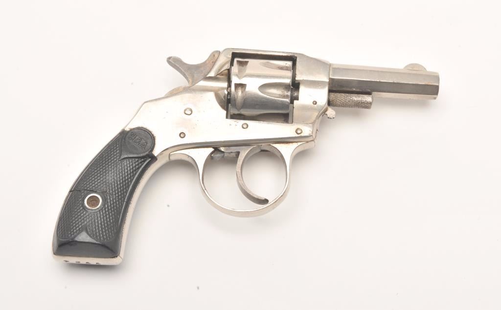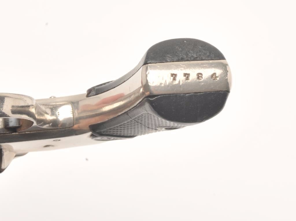 Hopkins and Allen X.L. double action revolver, .22 caliber, Serial #7784. The pistol is in very good overall condition with a 2 ¼” octagon barrel. The pistol retains the majority of its nickel finish with mutedcase hardening of the hammer and trigger. The checkered rubber grips are in good condition showing primarily handling marks. The bore is good, the action functions and the markings are legible. Est.:$75-$150. (C+R)