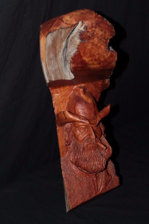 Lot 639 Carved wood figure of man with a cigar and signed “Bob Lundy 1984”. Measures 22”. Well known carve
