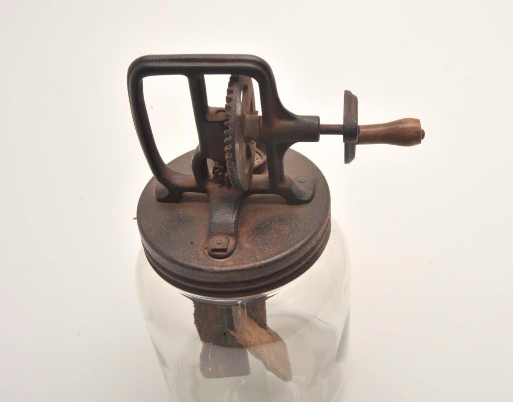 Lot 656 Vintage glass butter churn, ca. 1900’s; approximately 13” in height; great decorator! Est.: $