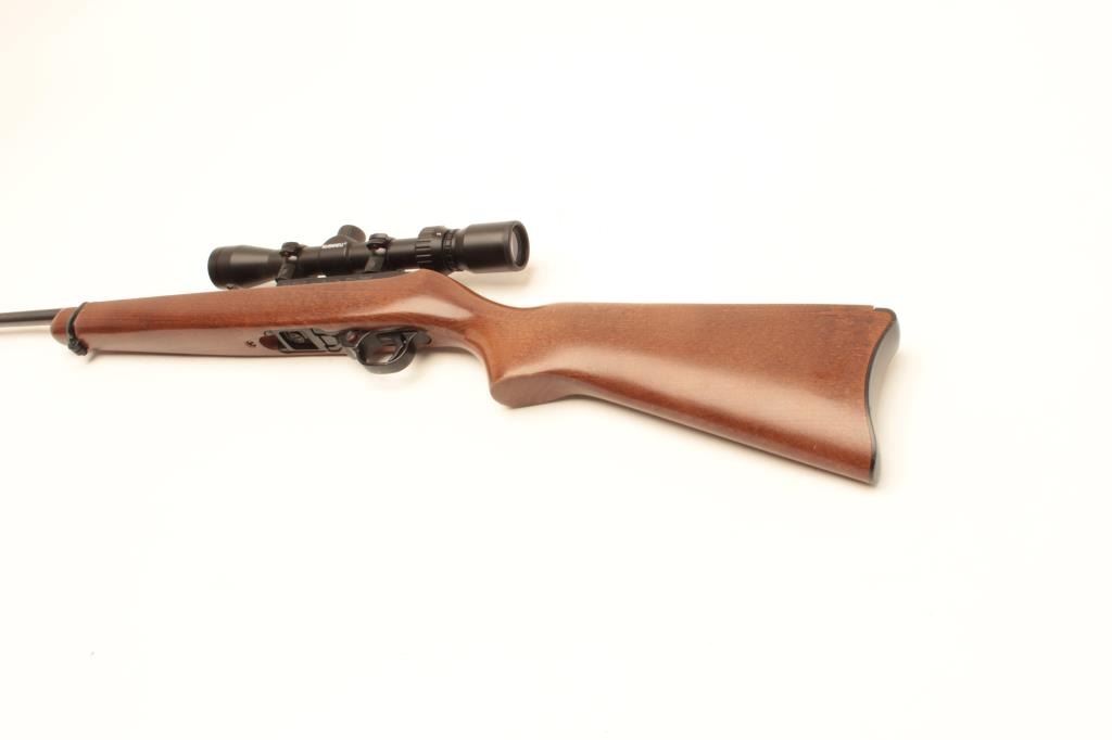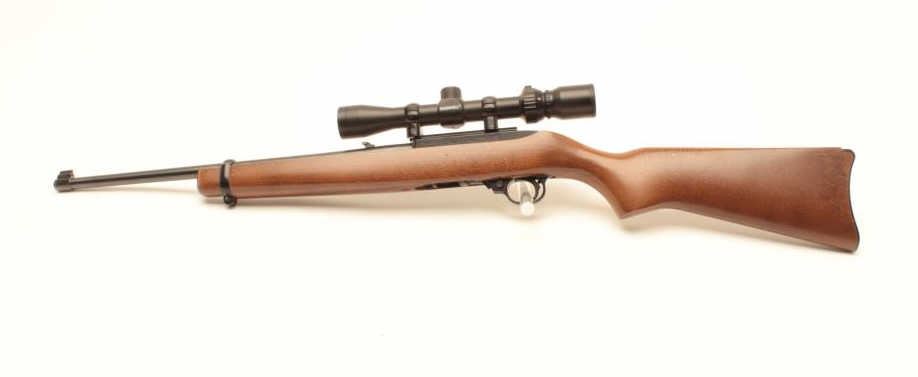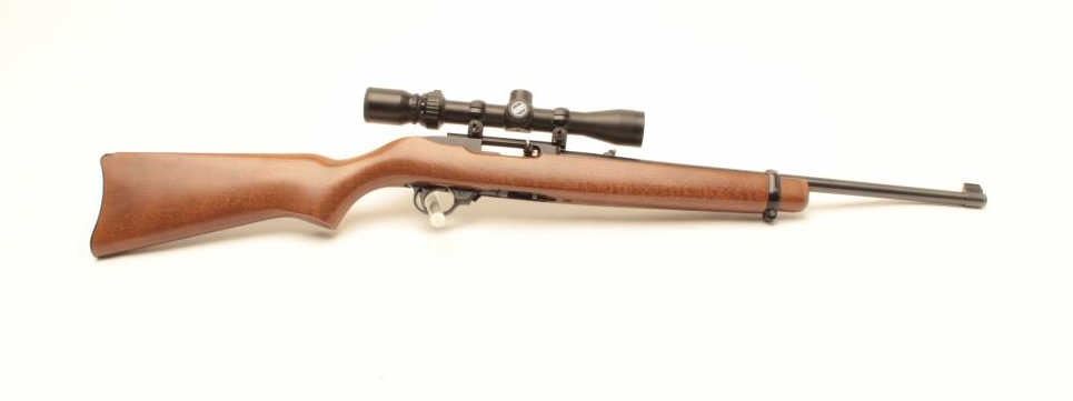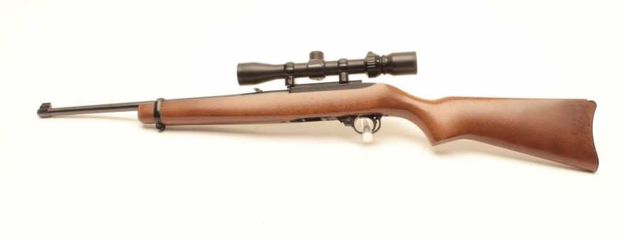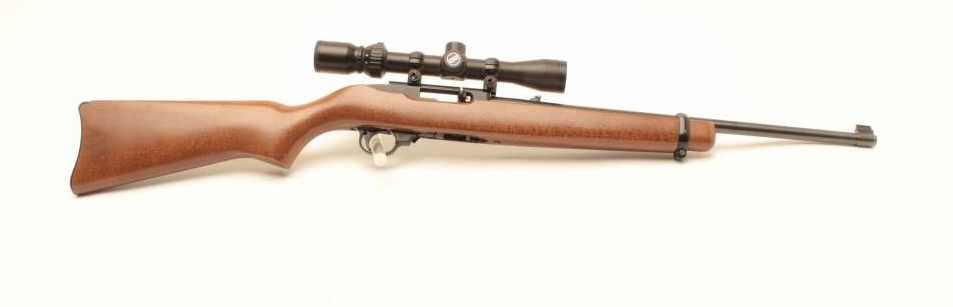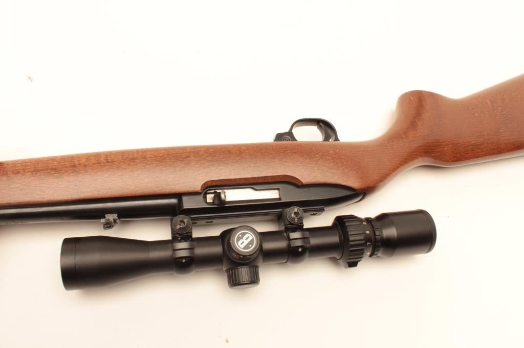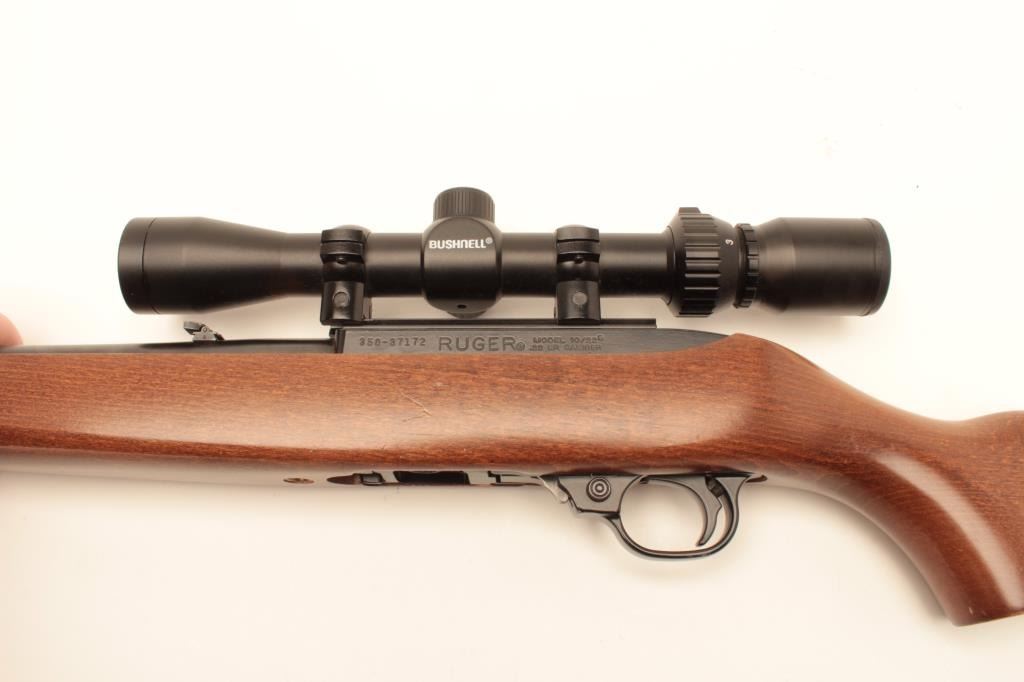 Ruger Model 10/22 semi-automatic rifle, .22LR caliber, 18.5” barrel, blued finish, wood stock, S/N 350-37172, mounted with a Bushnell scope displaying fine optics; in overall very good to fine condition with majority ofits original blued finish, very good bore, crisp action, sharp markings and fine stock. (Modern/No PPT). Est.: $125-$250.