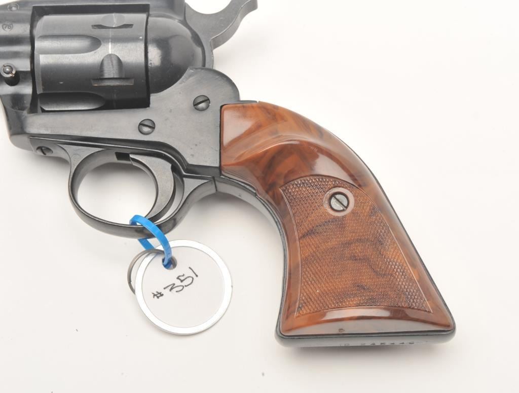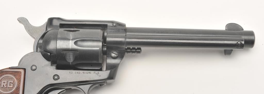 Rohm Model 66 revolver, .22 LR caliber, Serial #IB245446. The pistol is in very good overall condition with a 4 ¾” barrel. The pistol retains nearly all of its blue finish with small mars and a drag line on thecylinder. The checkered plastic grips are in very good condition with only storage marks. The bore is good, the action crisp and markings are sharp. The frame is import marked. Est.: $80-$160. (Modern)