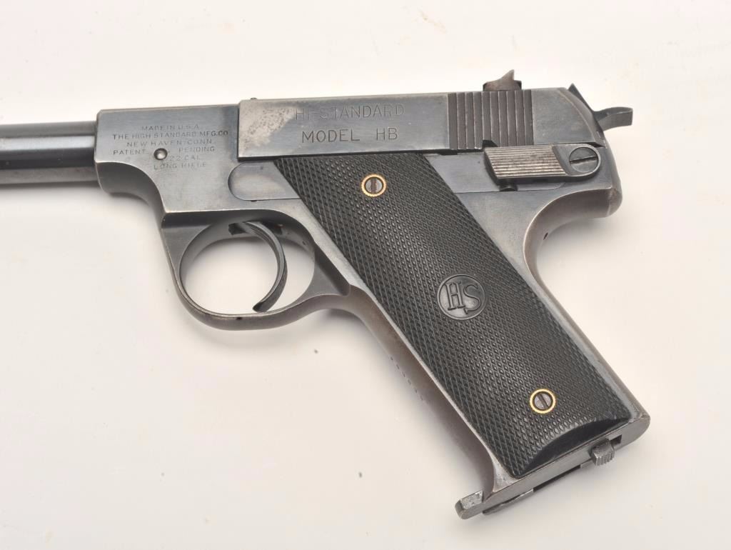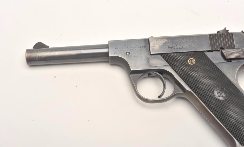 Lot 701 Hi Standard Model HB semi-auto pistol, .22 Long Rifle caliber, Serial #293839. The pistol is in v