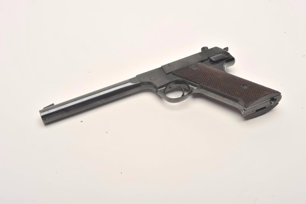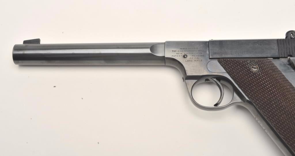 Lot 702 Hi Standard Model HD Military semi-auto pistol, .22 Long Rifle caliber, Serial #293839. The pisto