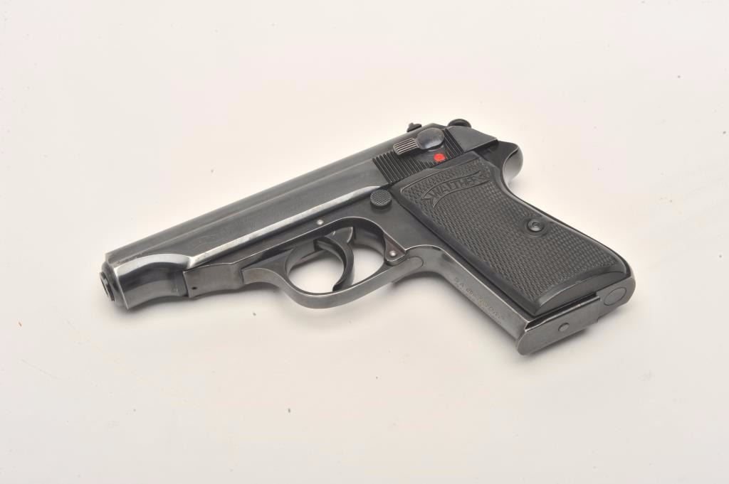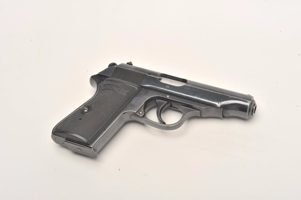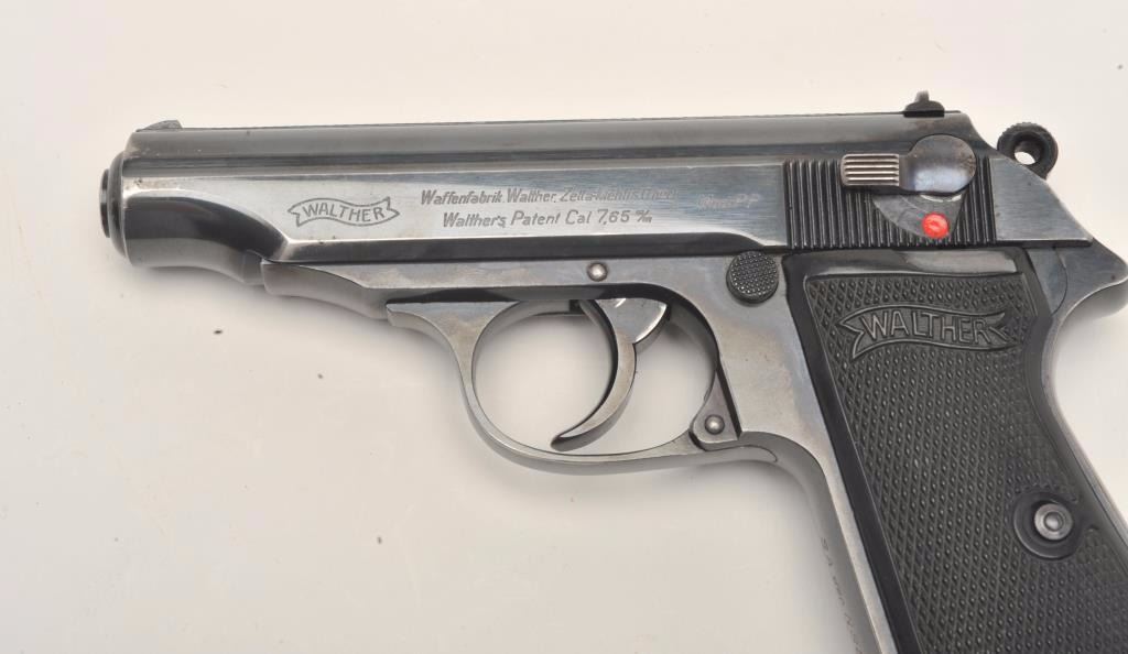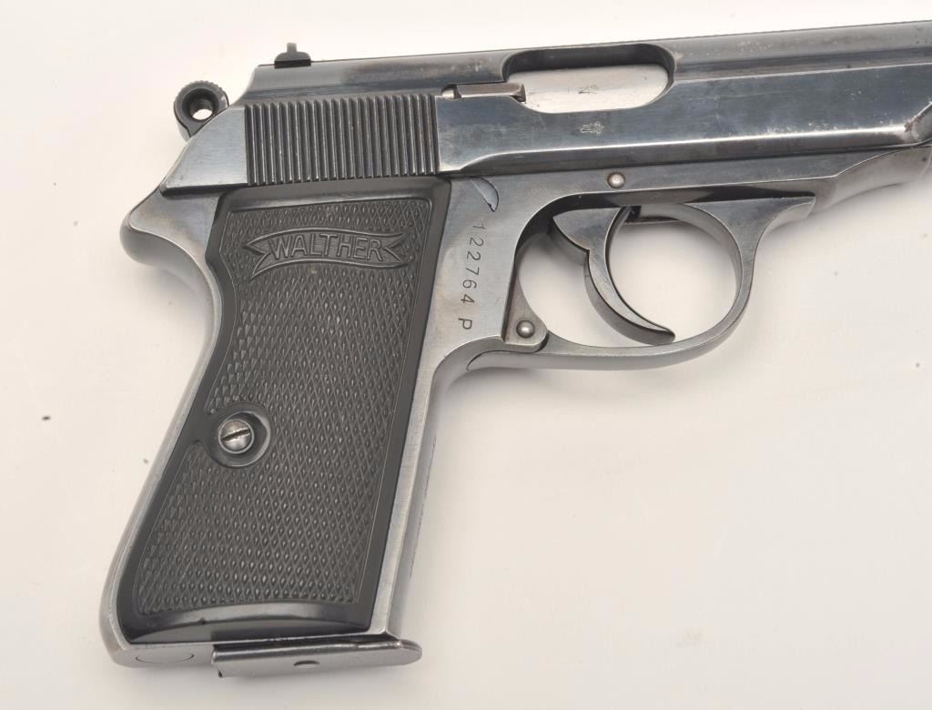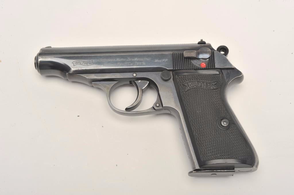 Lot 711 Walther Model PP semi-automatic pistol, 7.65mm caliber, 3.75” barrel, blued finish, checkered plas