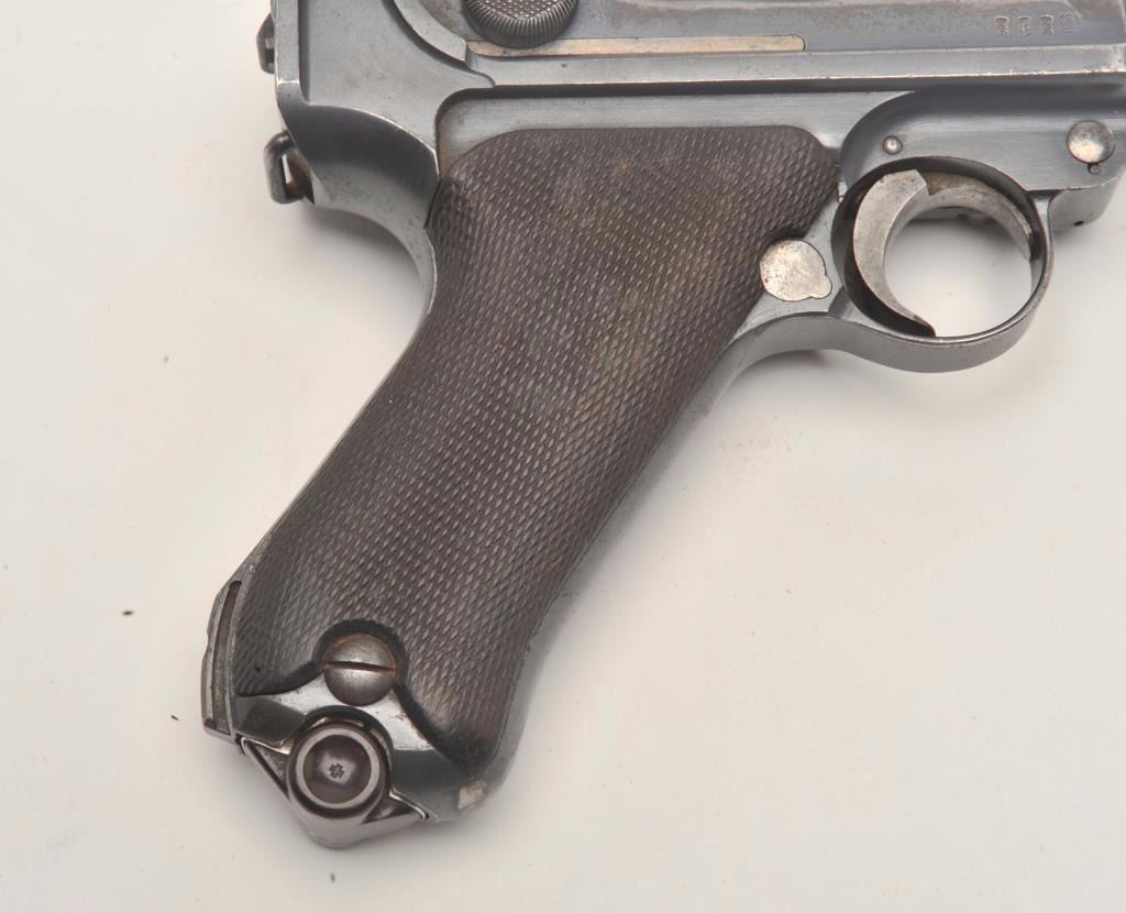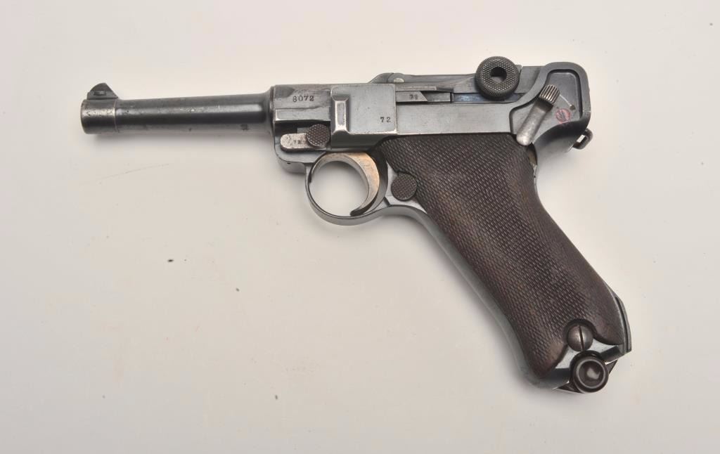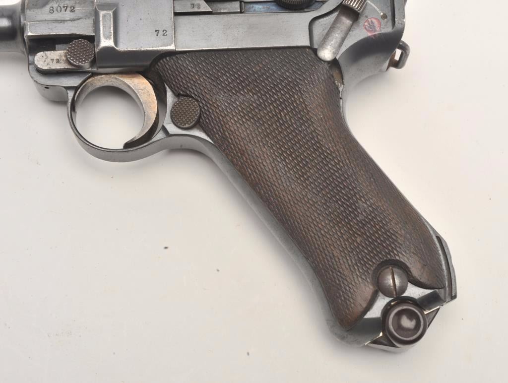 Lot 716 DWM Luger semi-auto pistol, 9mm caliber, Serial #8072. The pistol is in good overall condition wi
