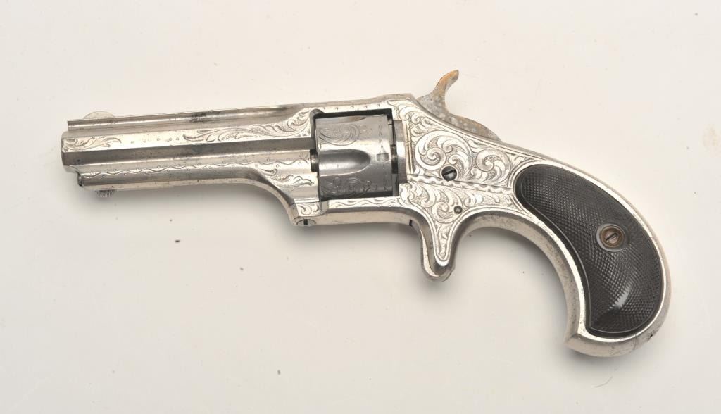 Lot 723 Engraved Remington Smoot No. 1 Model spur trigger revolver, .30 caliber, 2.75” barrel, nickel fini