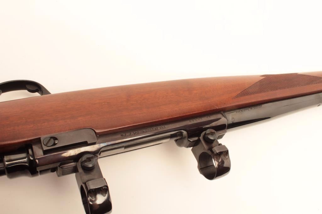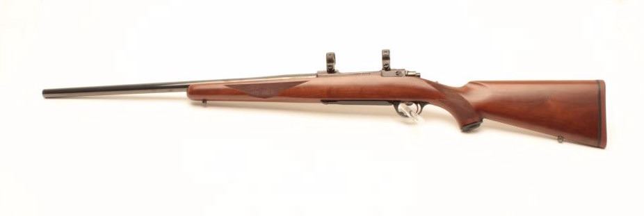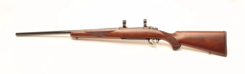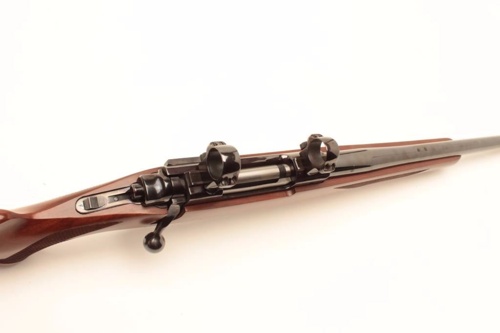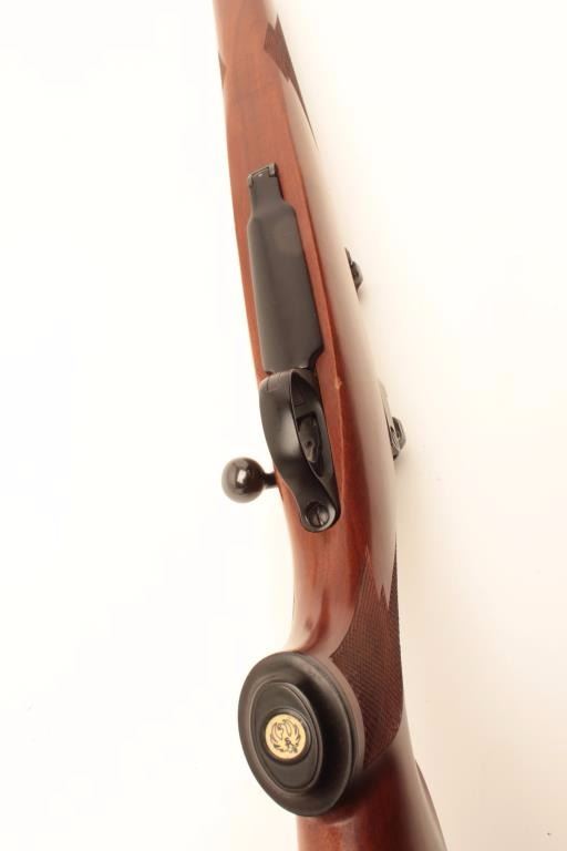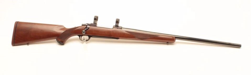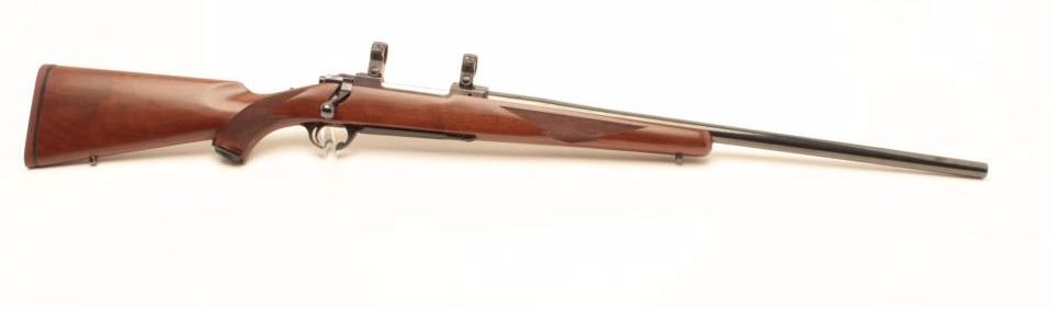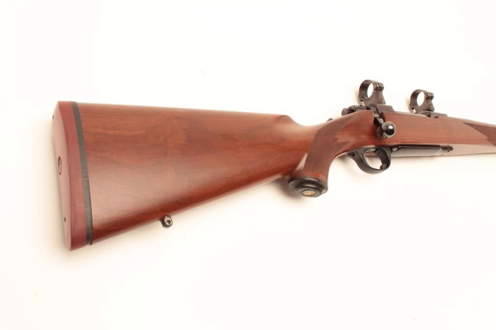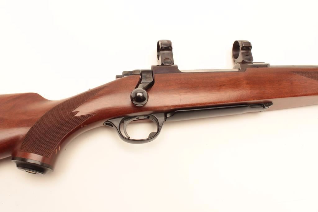 Ruger Model 77 rifle with 24” bull or heavy barrel and factory chambered for .280 Remington or 7mm Remington express, S/N 74-78817. Claw extractor. Scope mounts included. In fine to excellent condition.(Modern) Est.: $500-$1000