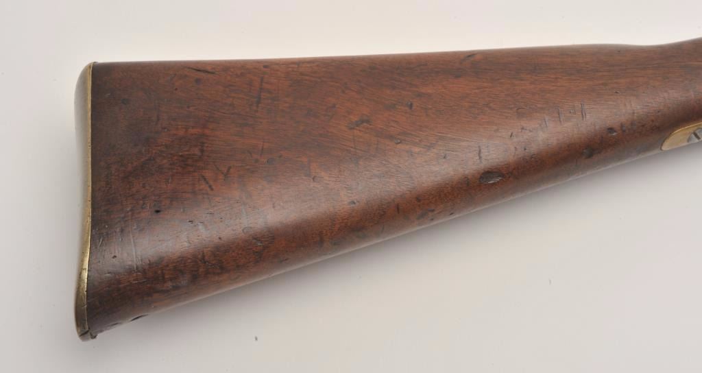 Lot 739 British Tower percussion rifle, .58 caliber, 38” barrel, brass trigger guard and butt plate, wood