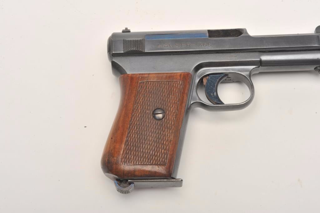 Lot 740 Mauser Pocket semi-automatic pistol, 7.65mm caliber, 3.5” barrel, blued finish, checkered wood gri