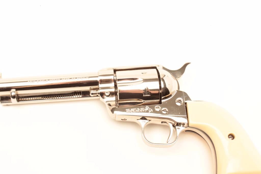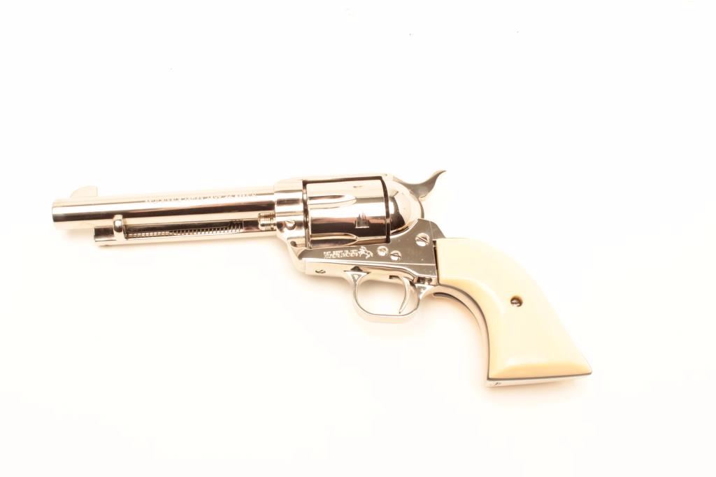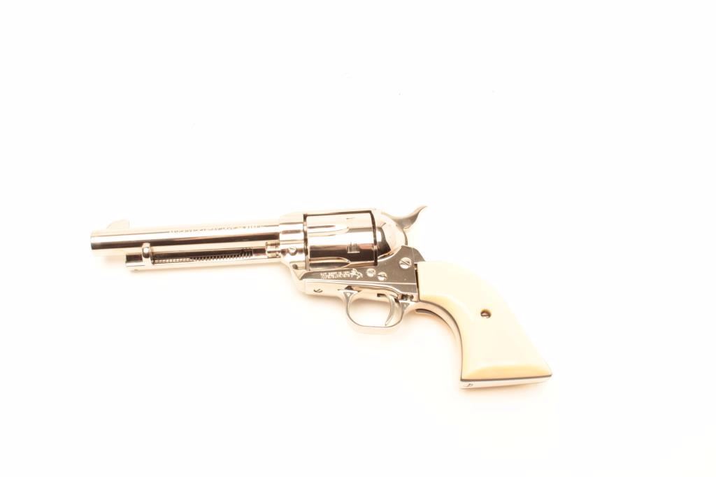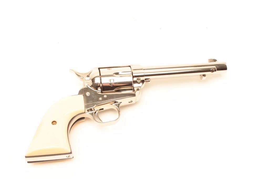 Lot 752 Colt 3rd Generation SAA revolver, .44 Special caliber, 5.5” barrel, factory nickel finish, faux iv