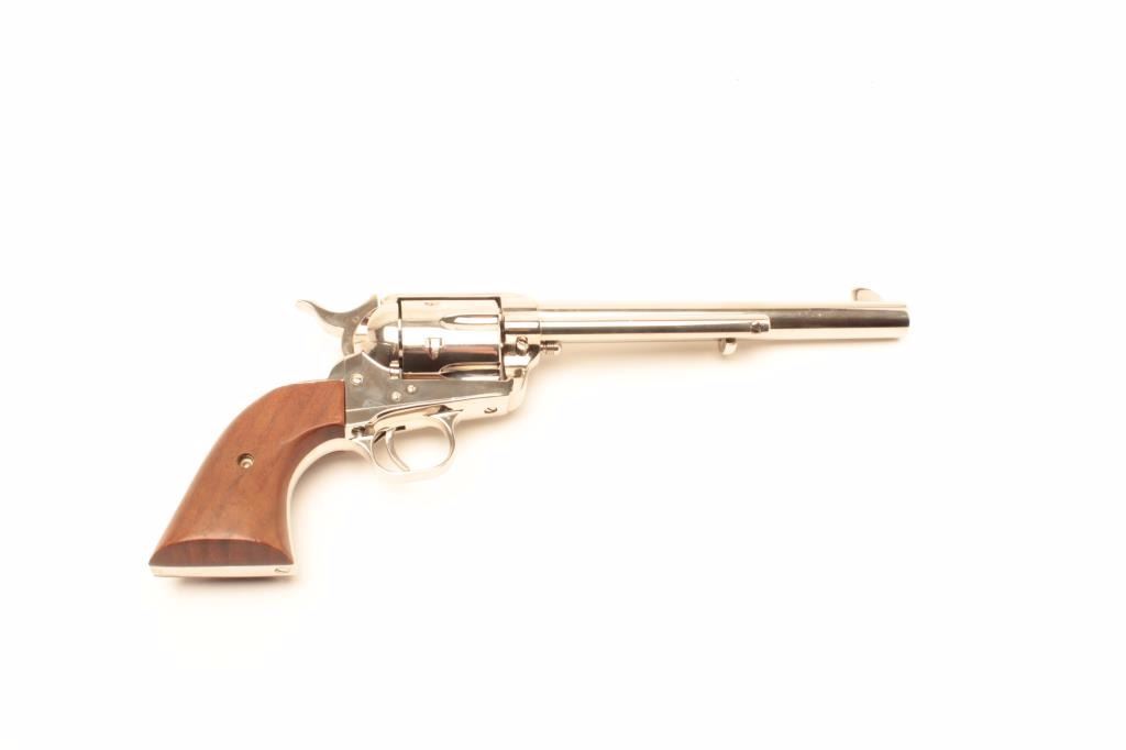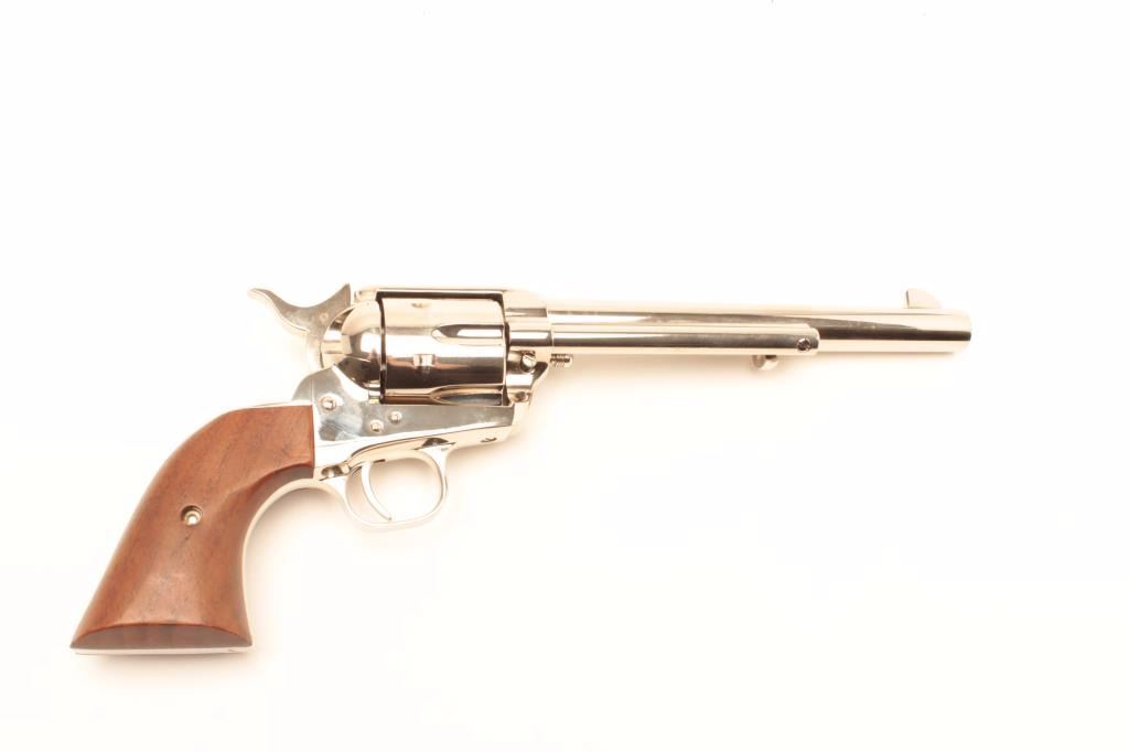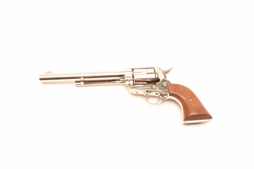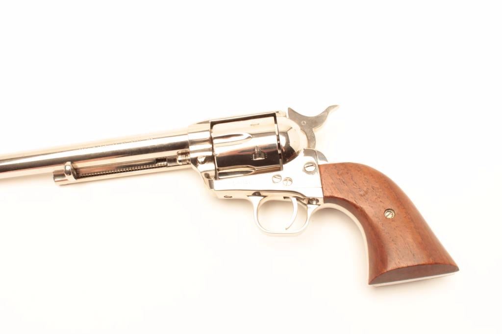 Lot 753 Colt 3rd Generation SAA revolver, .45 caliber, 7.5” barrel, factory nickel finish, smooth wood gri
