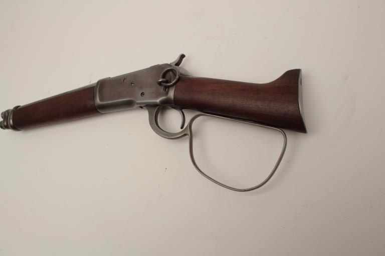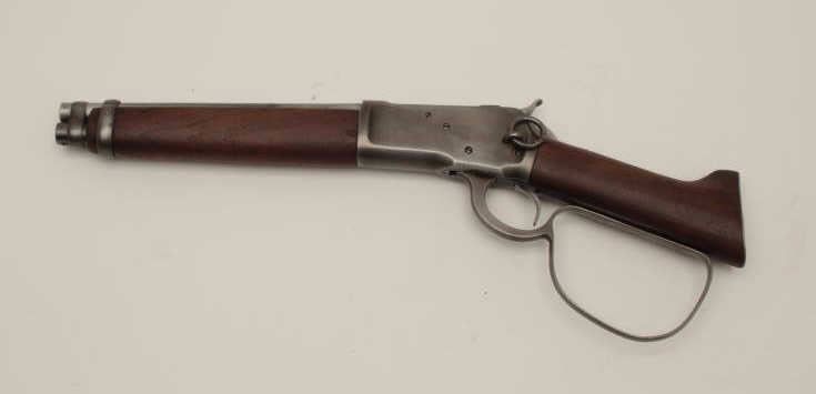 Lot 794 Replica of Steve McQueen’s “Mares Leg” carbine on 92 Winchester action with aluminum non-chamberin