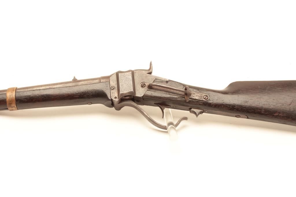 Lot 805 Confederate Sharps SRC, .52 caliber, 22” barrel, brass barrel band and butt plate, wood stocks, S/