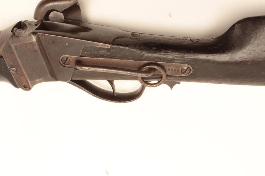 Confederate Sharps SRC, .52 caliber, 22” barrel, brass barrel band and butt plate, wood stocks, S/N 3320, in overall good un-cleaned condition with a dark patina to metal surfaces, crisp action, good markings,rough bore and overall good wood showing weathering, carry and scattered old wear. Ex- Dr. John Murphy collection. (Antique). Est.: $6,000-$12,000.